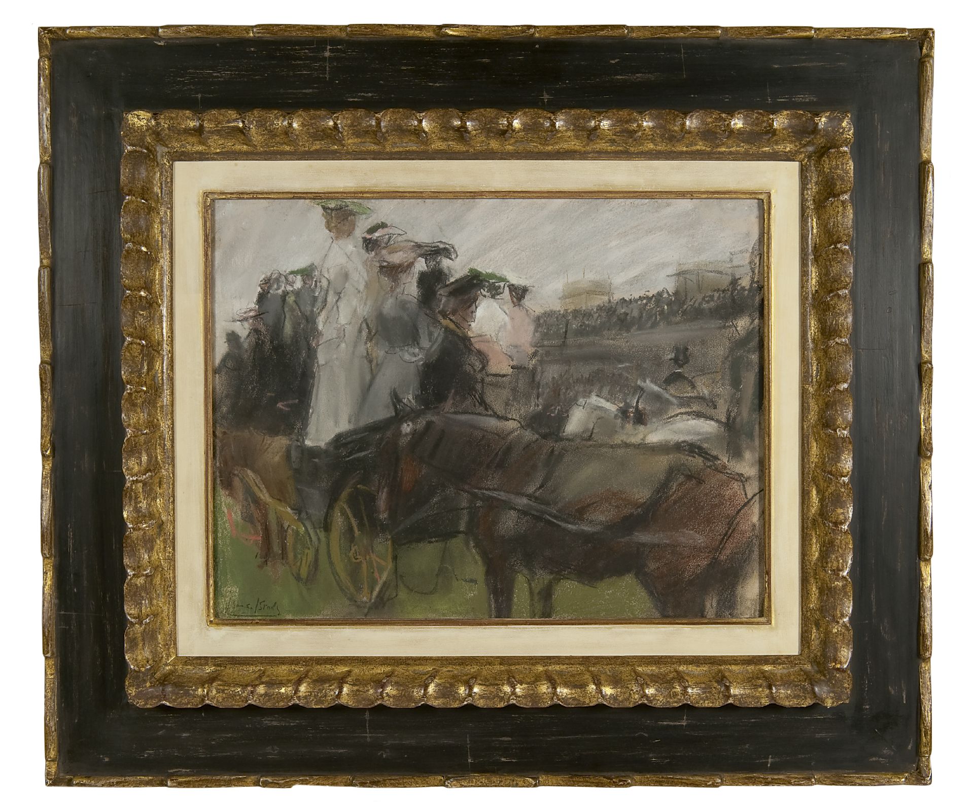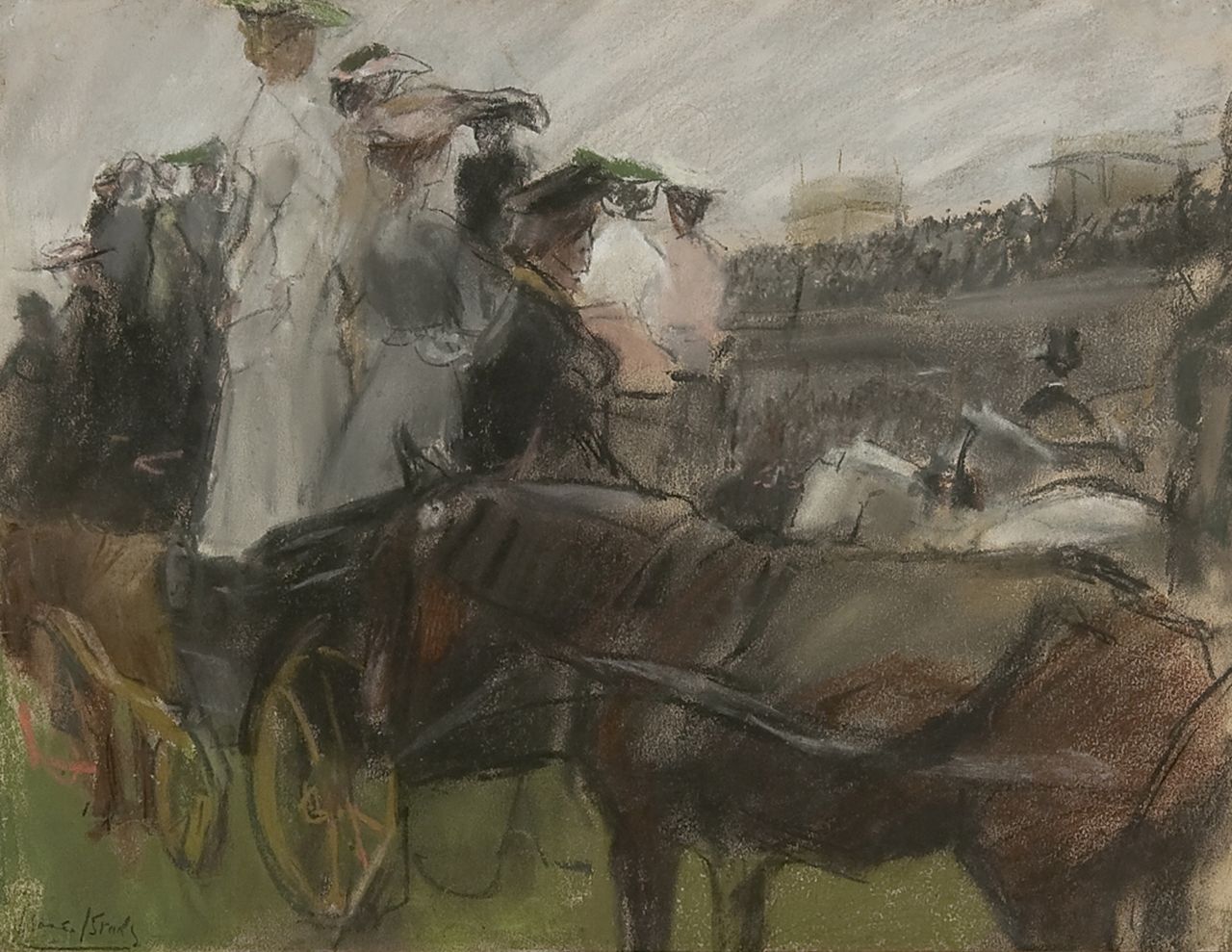 Isaac Israels kunstwerk • aquarel • tekening • voorheen te koop Op de renbaan van Longchamps, Parijs