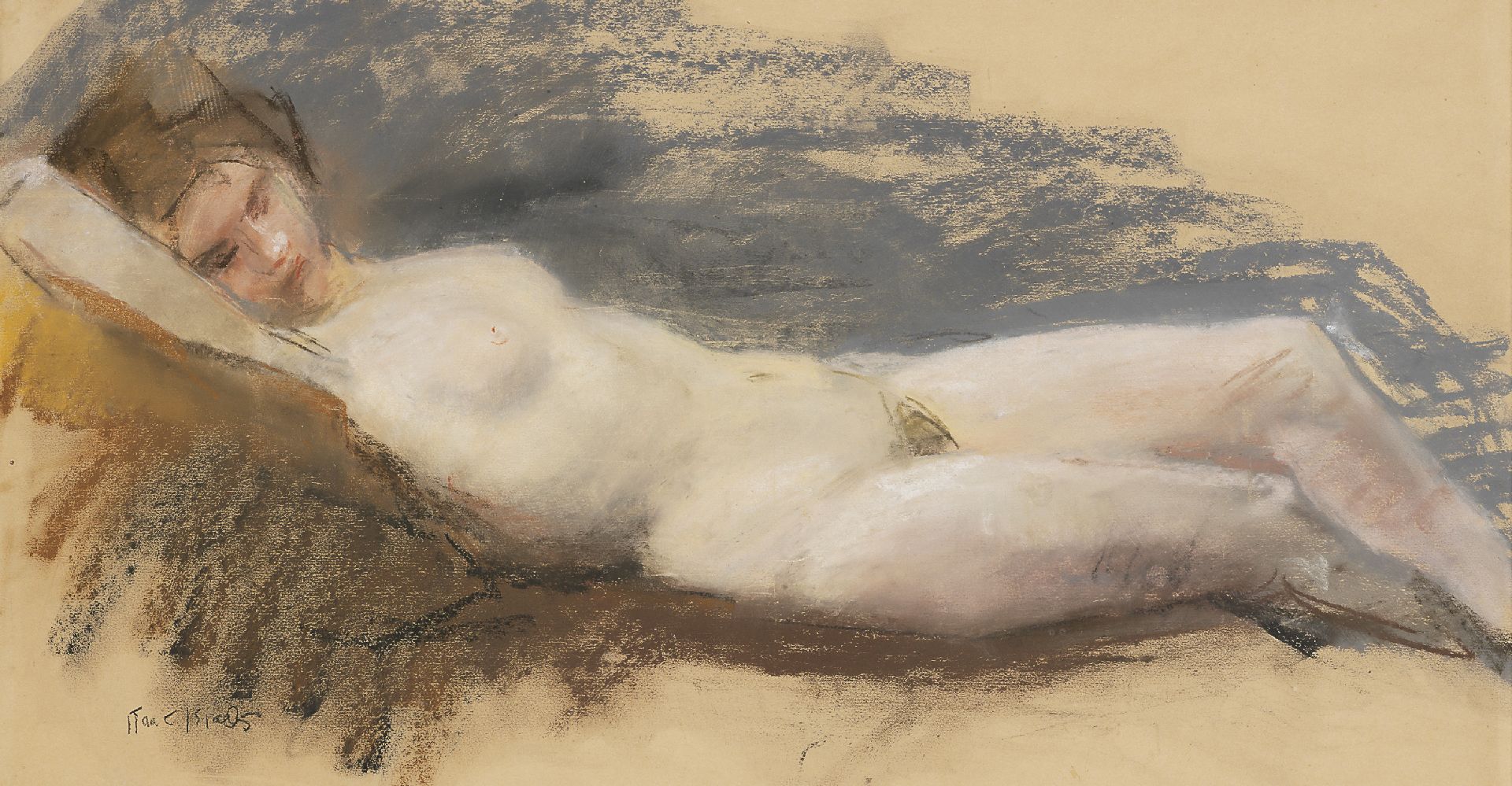Isaac Israels kunstwerk • aquarel • tekening • voorheen te koop Slapend naakt