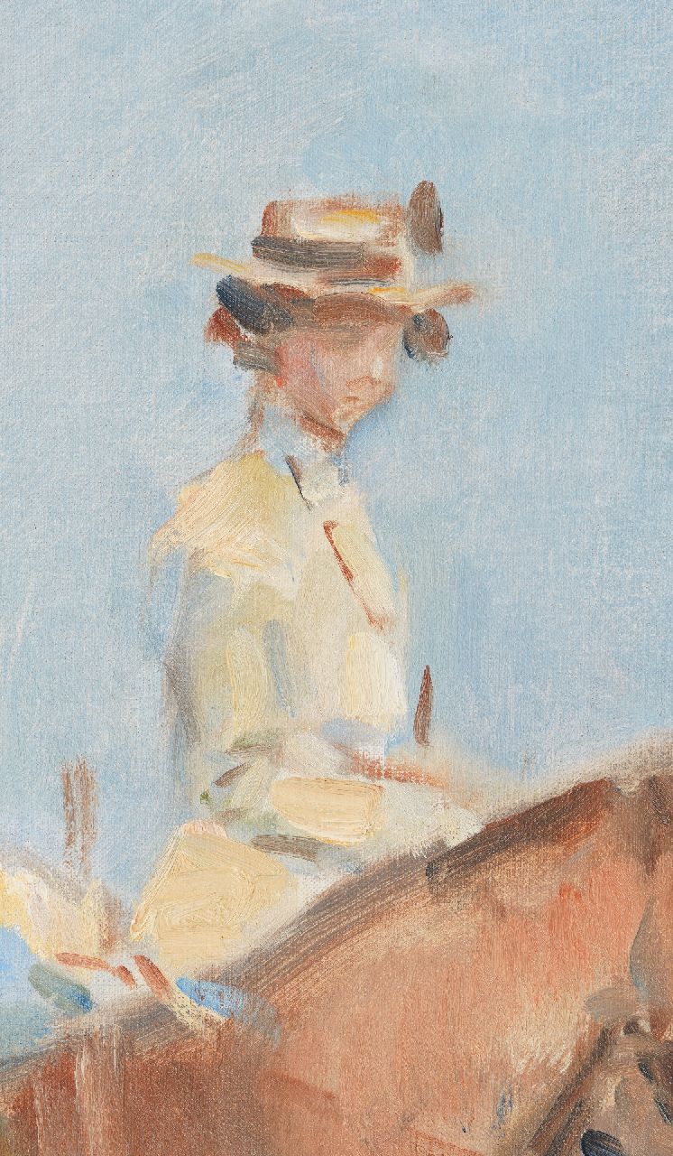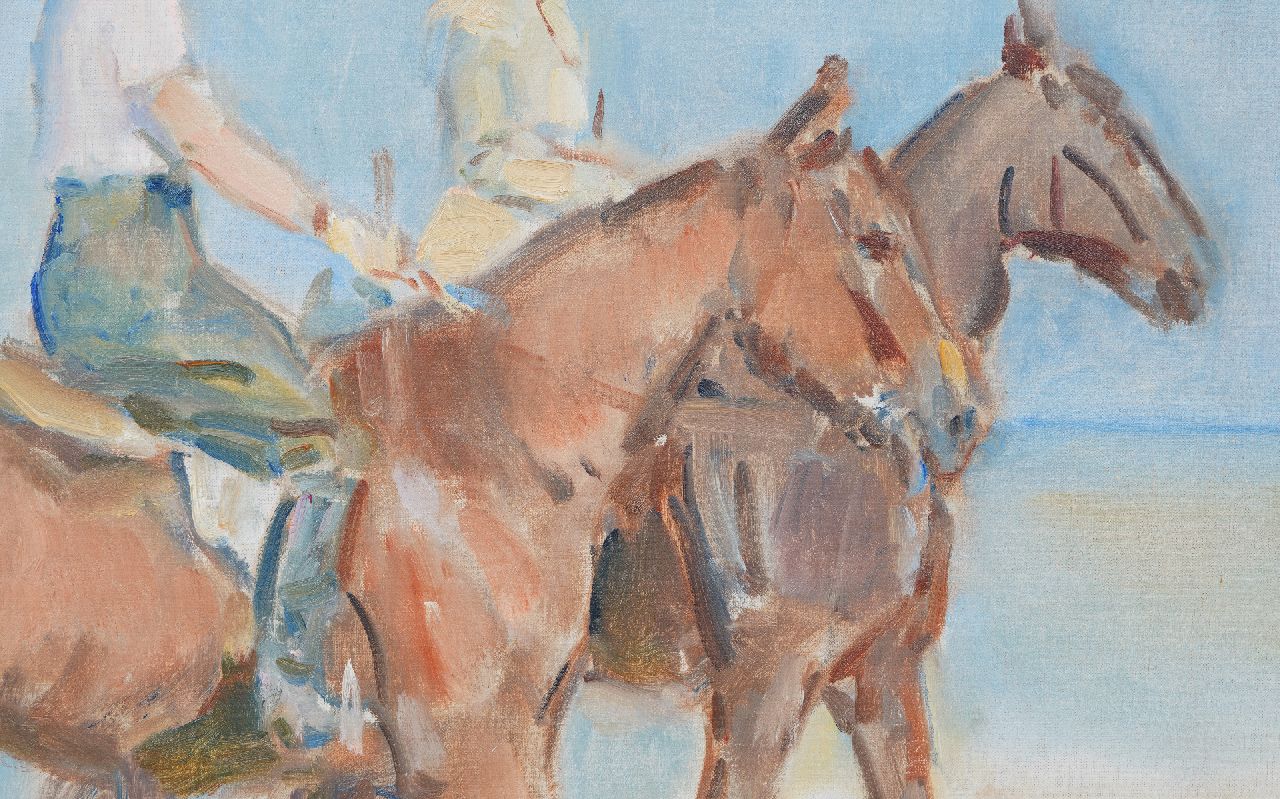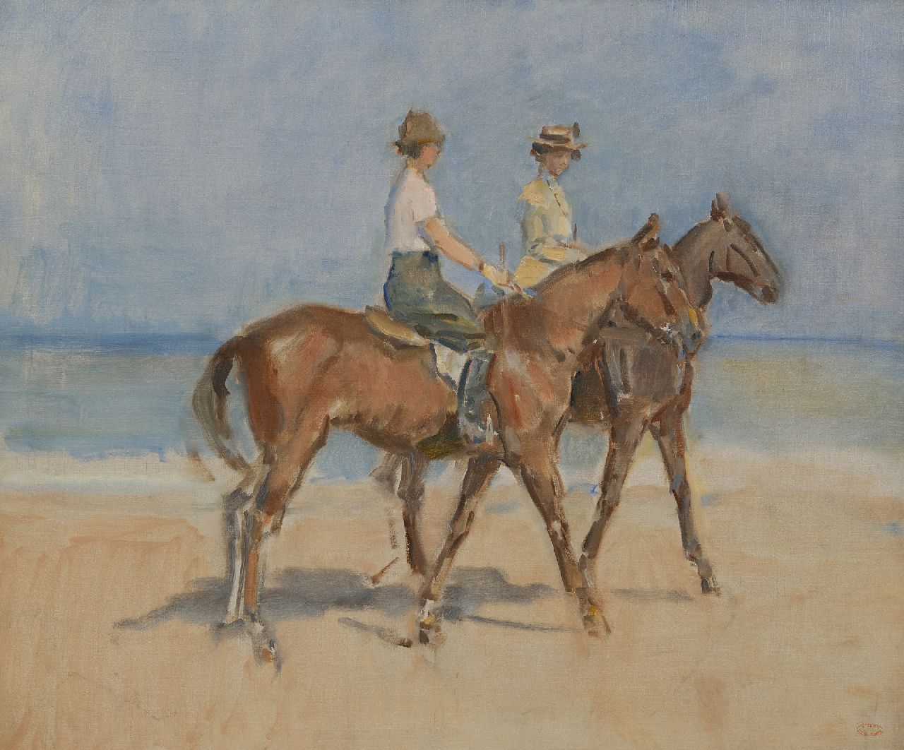 De Amsterdamse impressionist Isaac Israels schilderde brokken ‘toevallig leven' die hij vond in de winkelstraten, koffiehuizen en theaters van de stad. Maar ook aan de Hollandse kust en langs de Italiaanse Rivièra, waar hij luchtige strandscènes schilderde met elegant geklede dames in zomerse toiletten. Zomers verbleef Isaac vaak in Scheveningen, waar hij samen met zijn vader Jozef een huis huurde. Daar legde hij twee sportieve amazones tijdens hun (ochtend) ritje over het strand vast in snelle, virtuoze penseelstreken en een zonnig palet. Volgens vriend Frans Erens hield Israels niet van vormelijkheid en conventies en was hij altijd op zoek naar het 'echte' in alles.