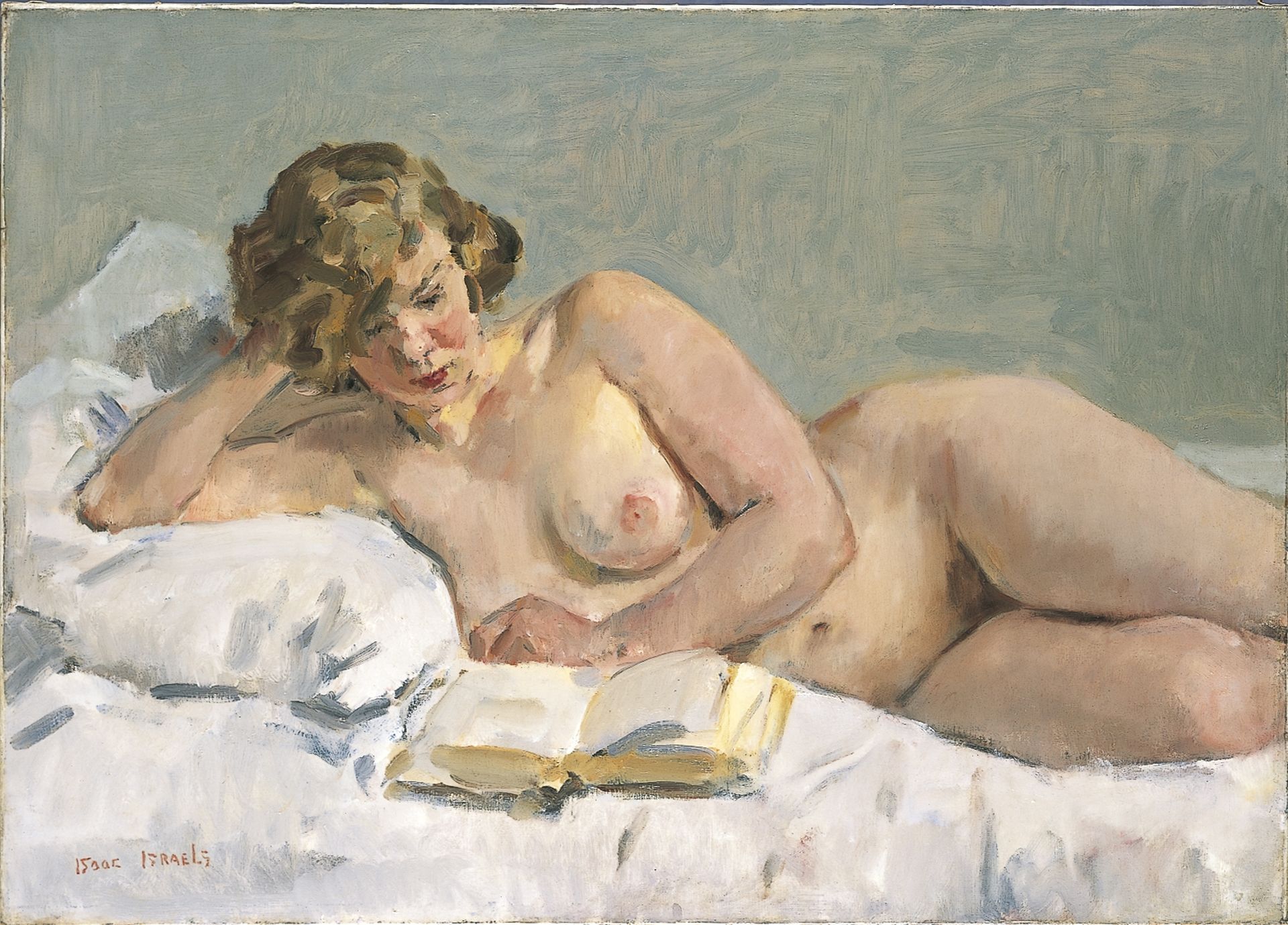 Isaac Israels kunstwerk • schilderij • voorheen te koop Lezend naakt (Sjaantje van Ingen)