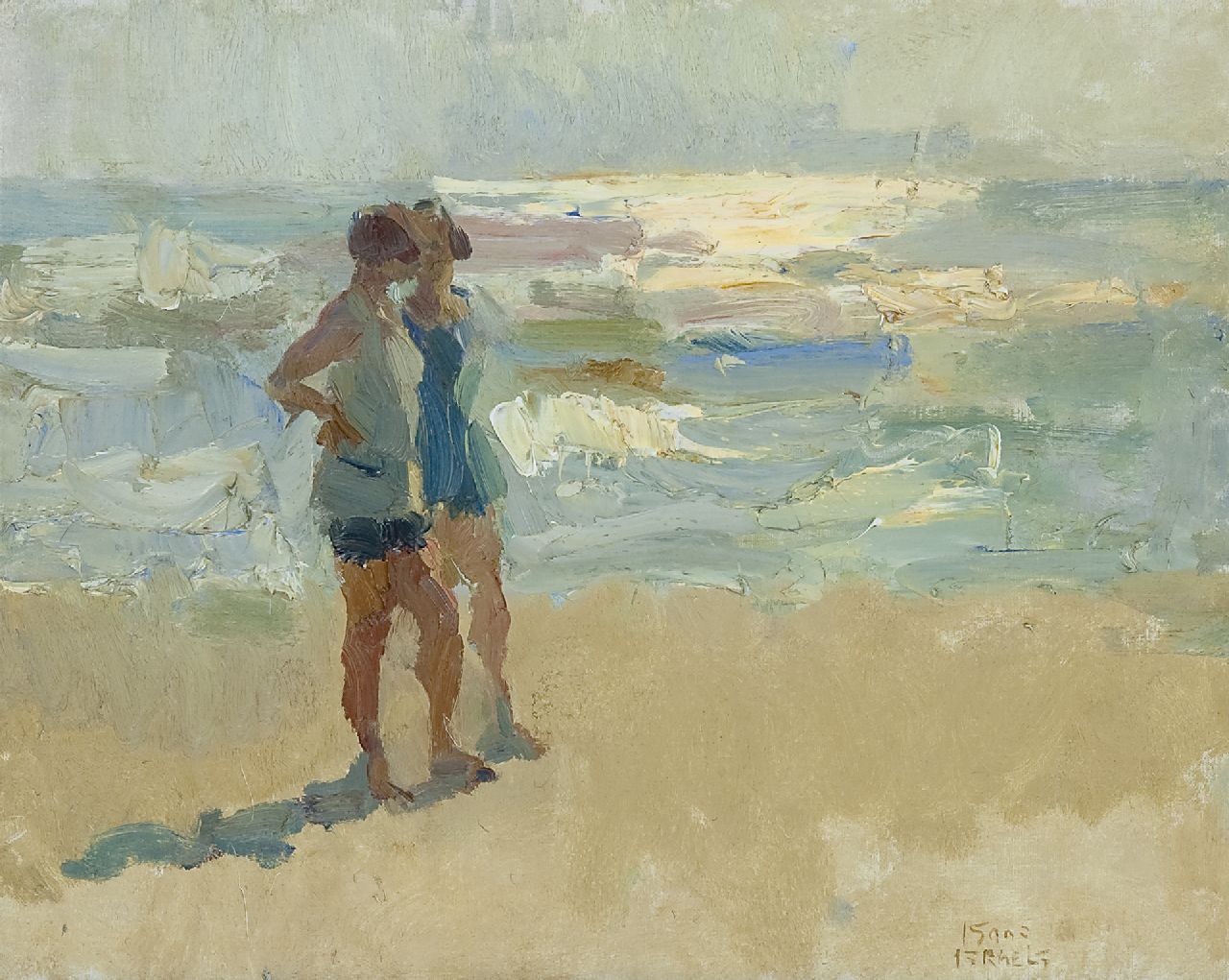 Isaac Israels was, samen met George Hendrik Breitner, de belangrijkste vertegenwoordiger van de groep Amsterdamse Impressionisten. Hij schilderde brokken ‘toevallig leven', die hij vond in de winkelstraten, koffiehuizen en café-chantants waar het drukke, stadse leven zich afspeelde. In enkele rake houtskoollijnen of losse snelle penseelstreken met subtiele kleuraccenten legde de kunstenaar vast wat hij zag. Hij schilderde ook strandscènes in Scheveningen en langs de Italiaanse Rivièra en was een knap portrettist. In 1903 vestigde Israels zich voor een aantal jaren in Parijs.