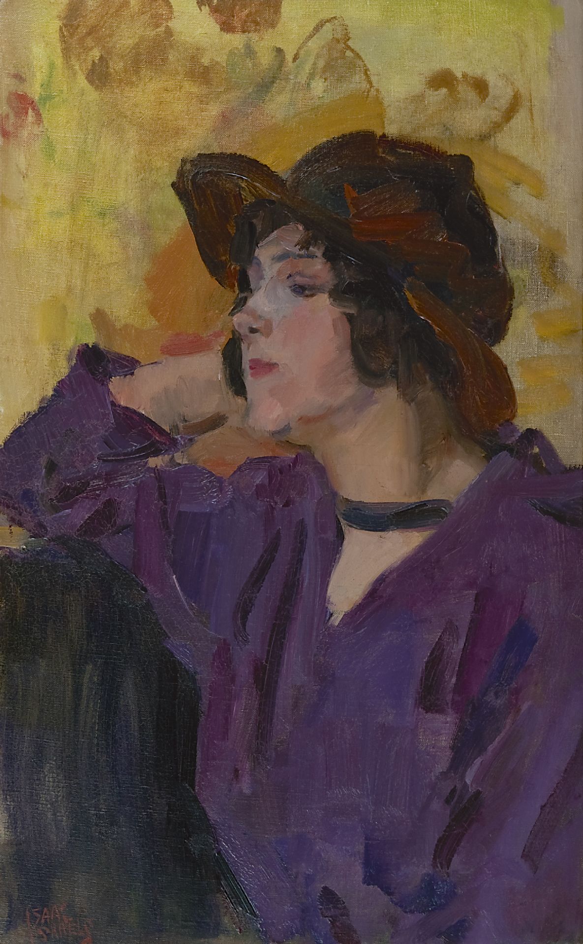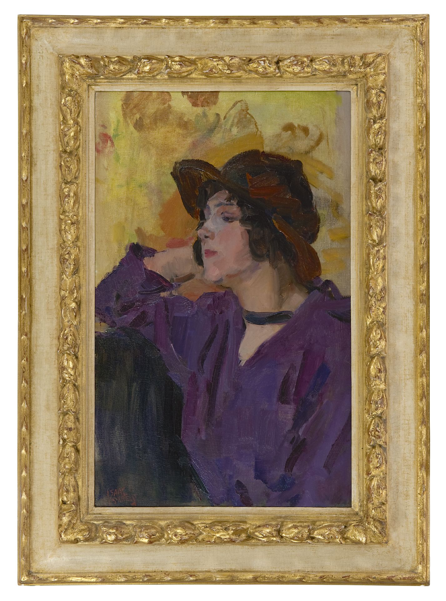Isaac Israels kunstwerk • schilderij • voorheen te koop Vrouw in paarse blouse voor Zonnebloemen van Van Gogh
