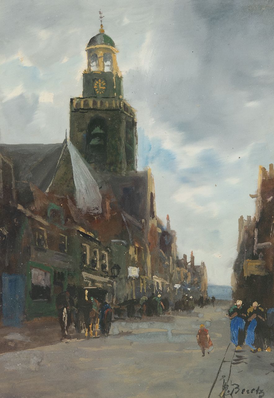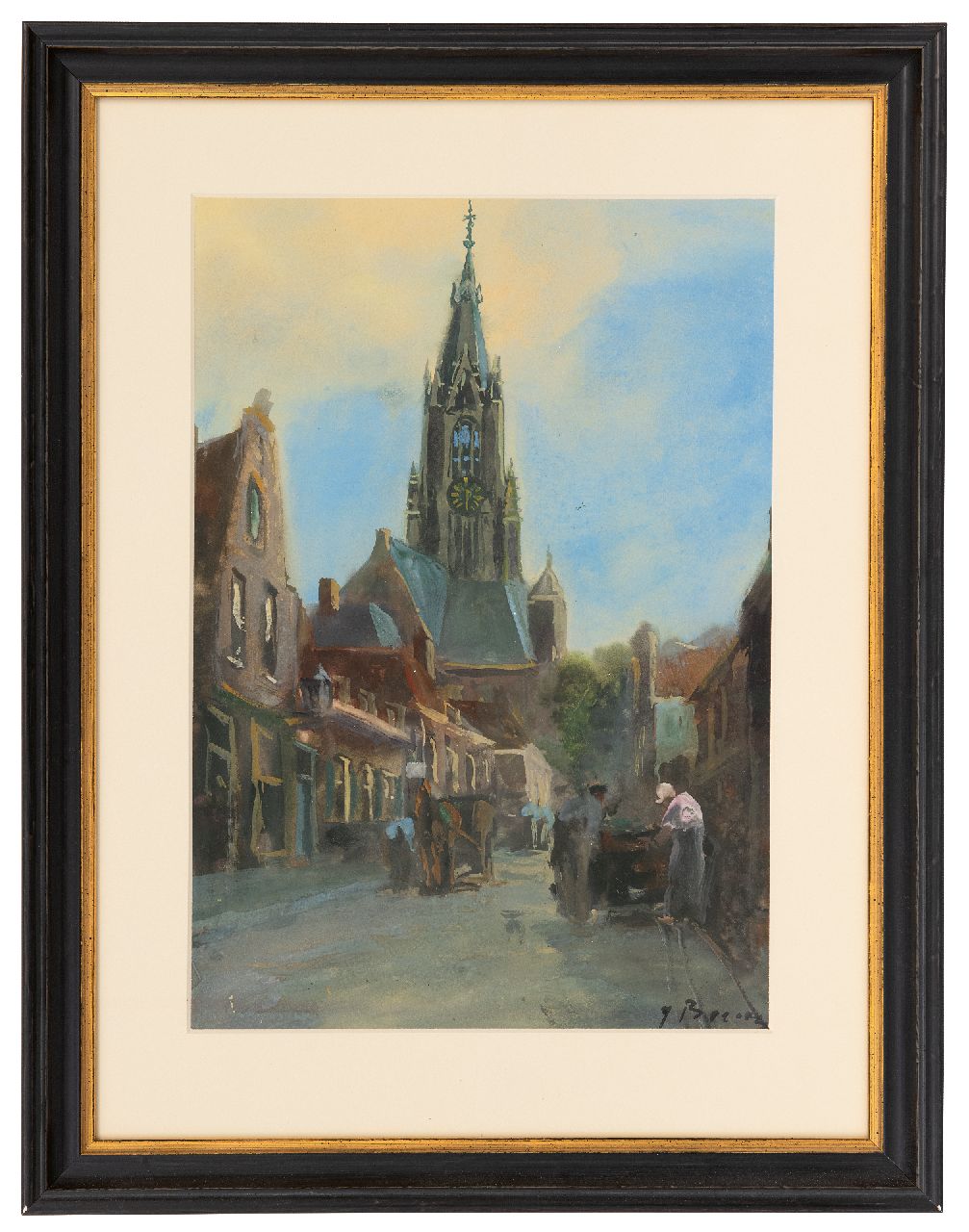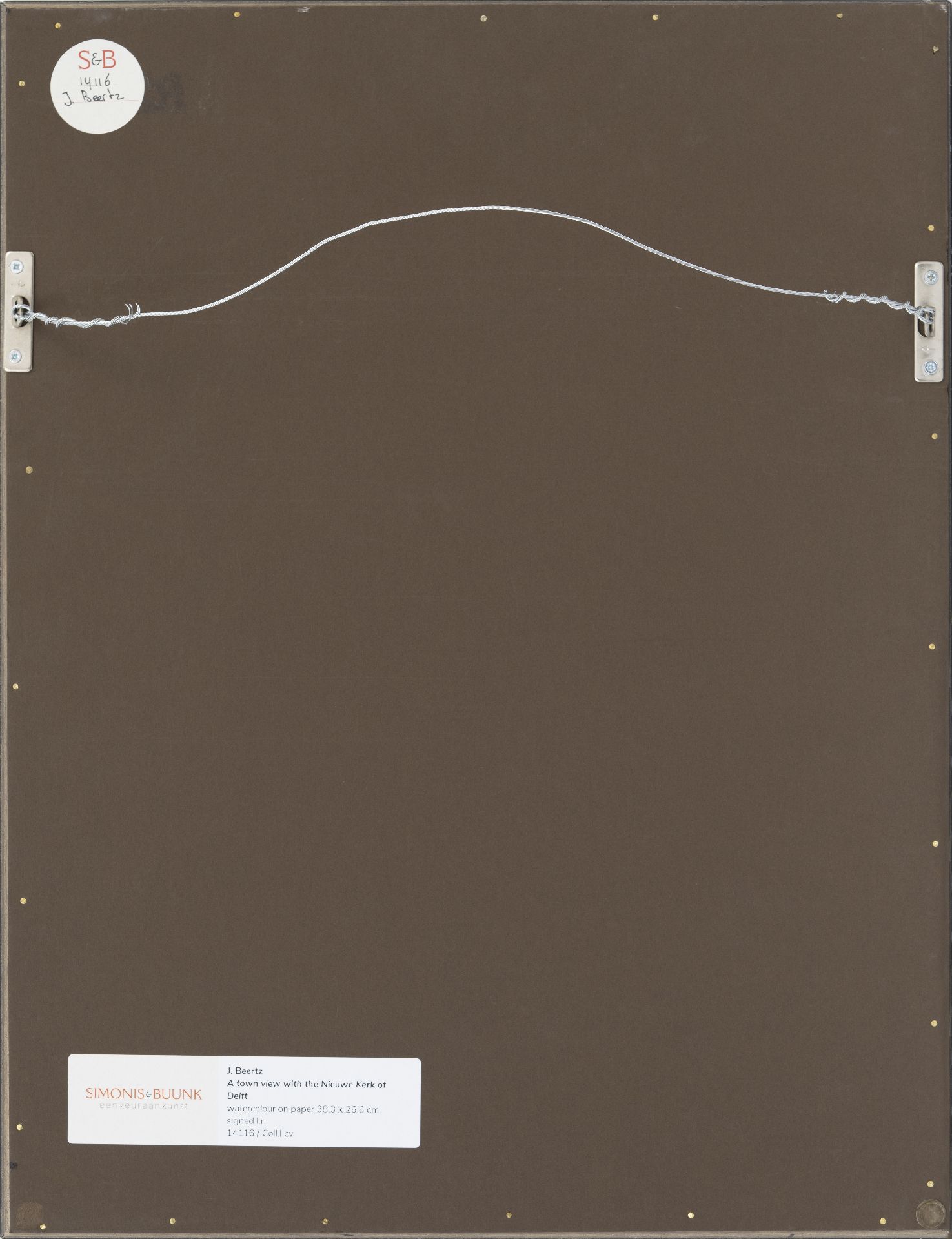J. Beertz kunstwerk • aquarel • tekening • te koop Stadsgezicht met de Nieuwe Kerk van Delft