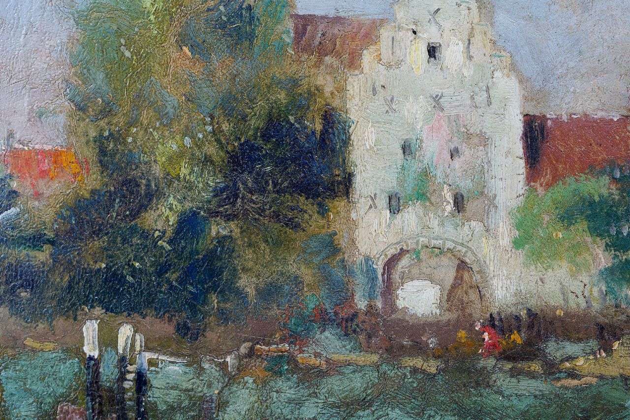 J. Brouwers kunstwerk • schilderij • te koop Zonovergoten stad aan het water