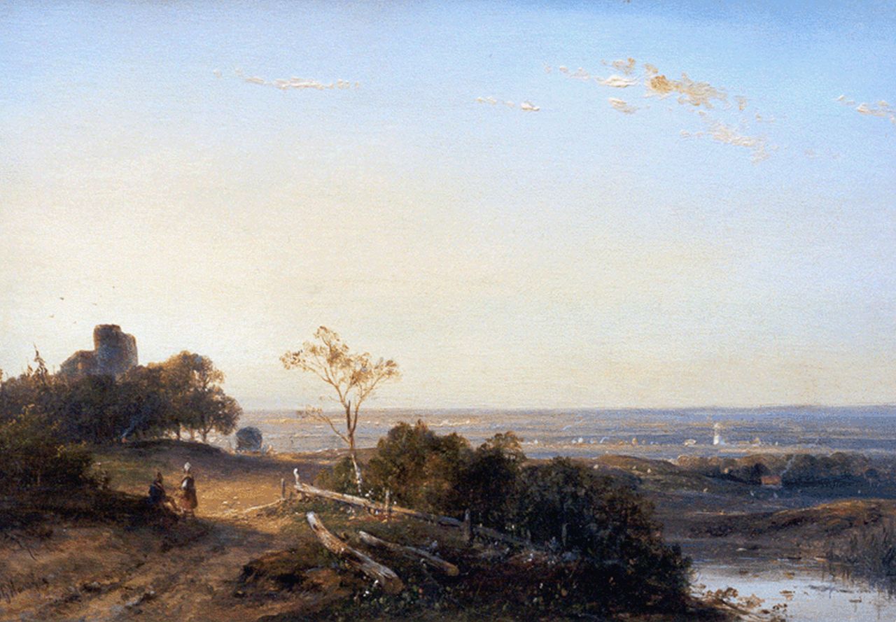 J.G. Hans kunstwerk • schilderij • voorheen te koop Figuren in een weids landschap met ruïne