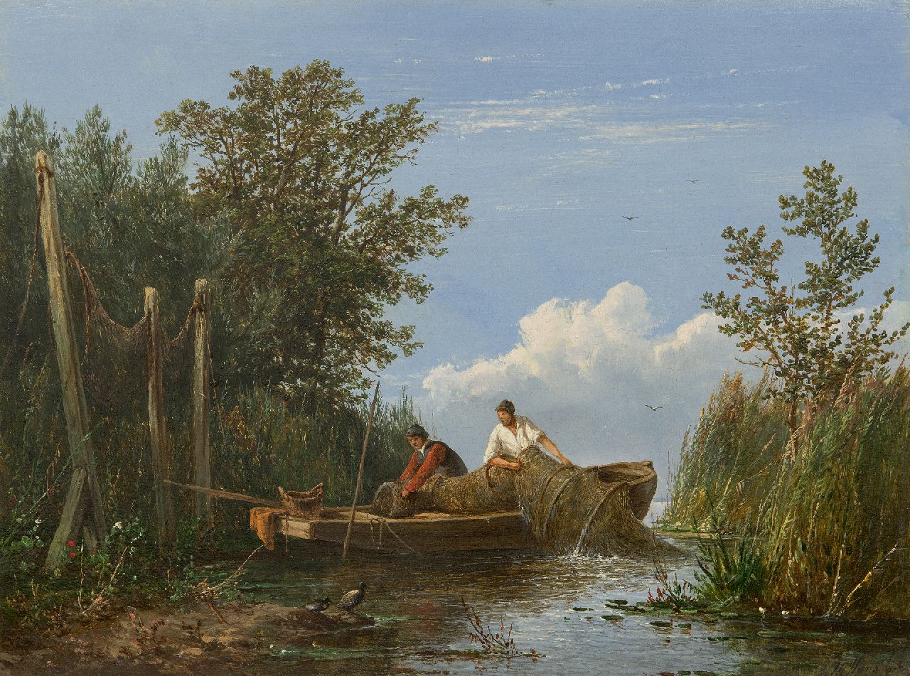 J.G. Hans kunstwerk • schilderij • te koop Het binnenhalen van de fuiken