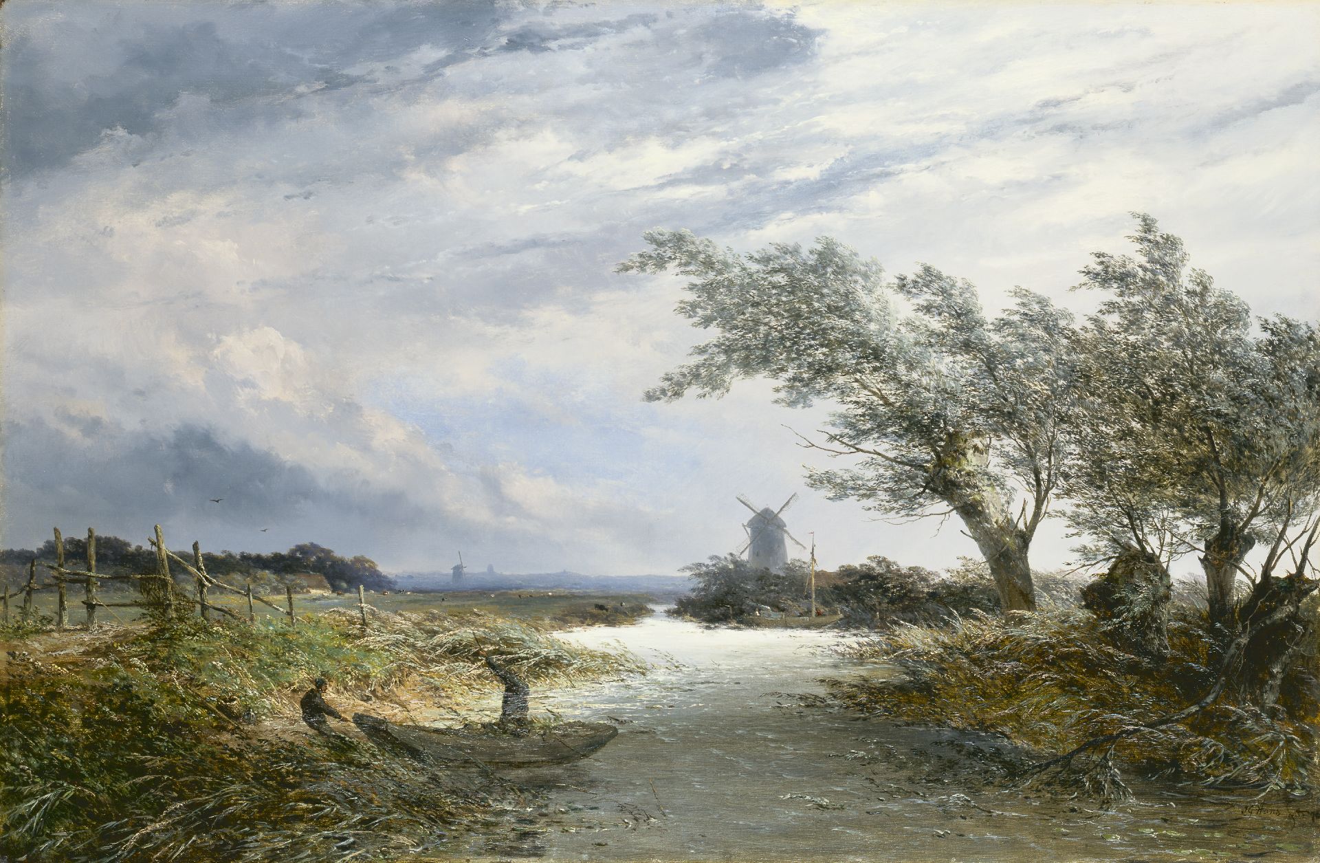 J.G. Hans kunstwerk • schilderij • voorheen te koop Landschap met knotwilgen en molen aan een sloot