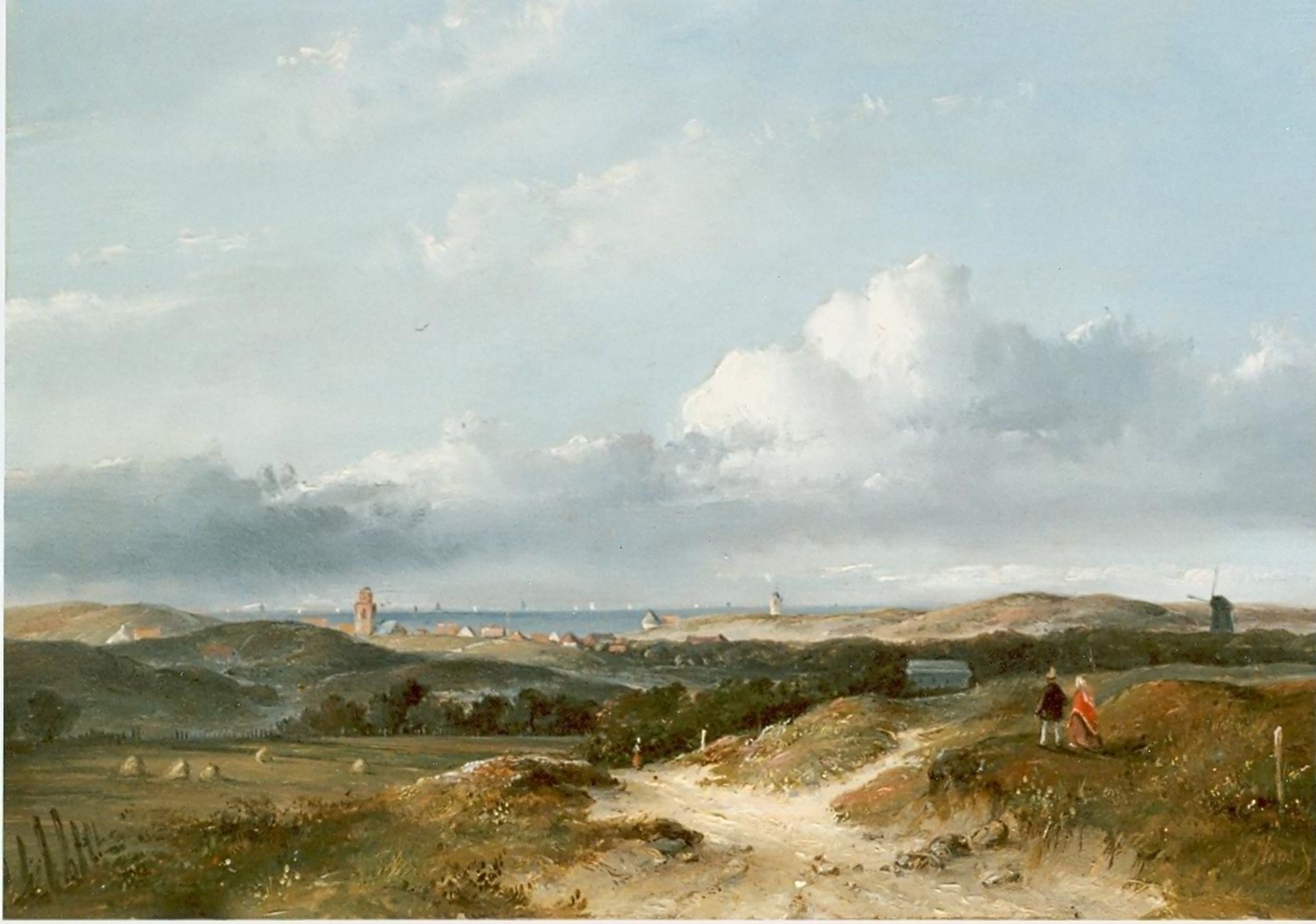 J.G. Hans kunstwerk • schilderij • voorheen te koop Panoramisch duinlandschap met zicht op Katwijk aan Zee