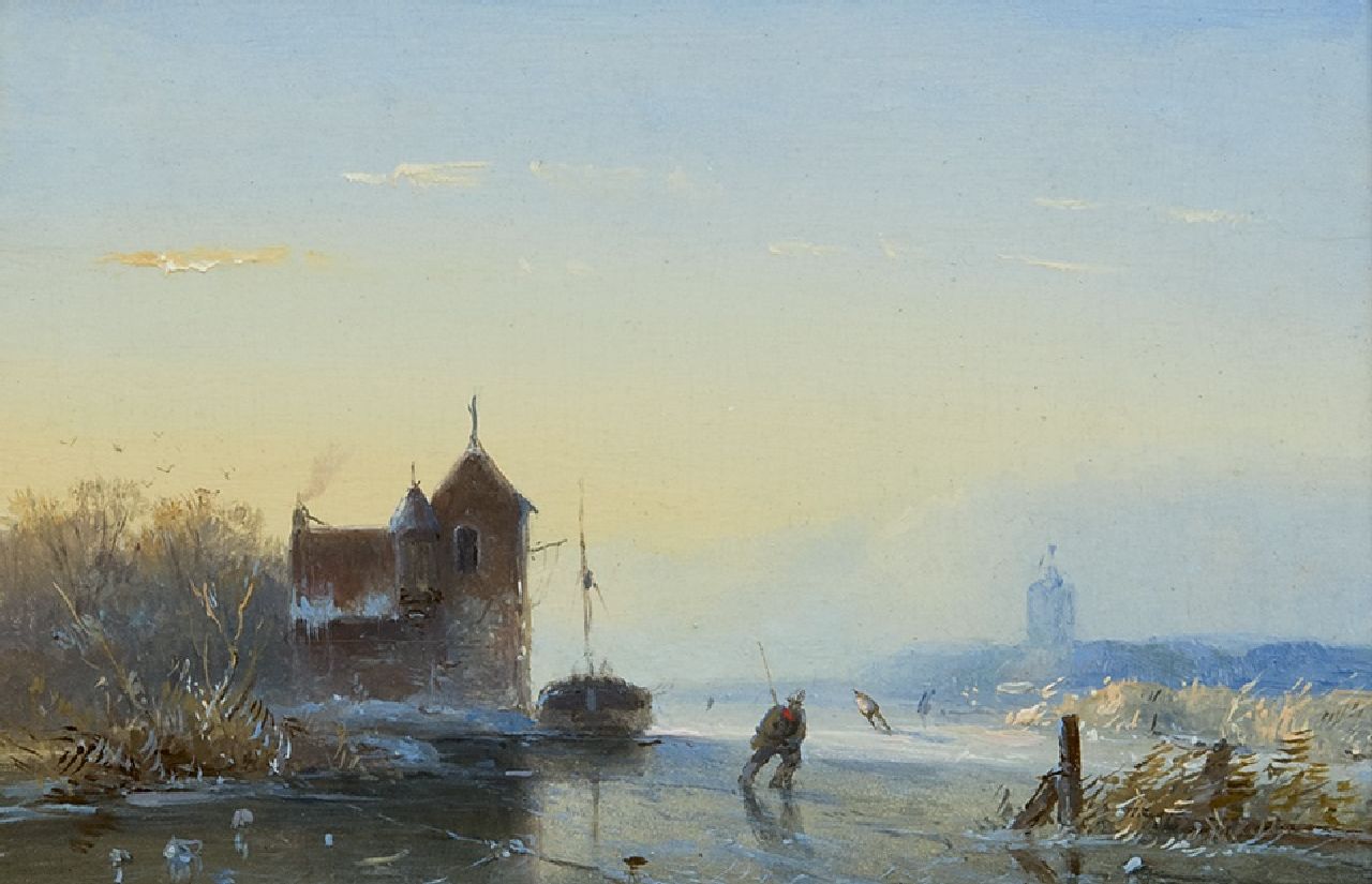 J.G. Hans kunstwerk • schilderij • voorheen te koop Winterlandschap met schaatsers
