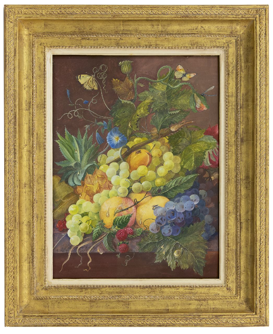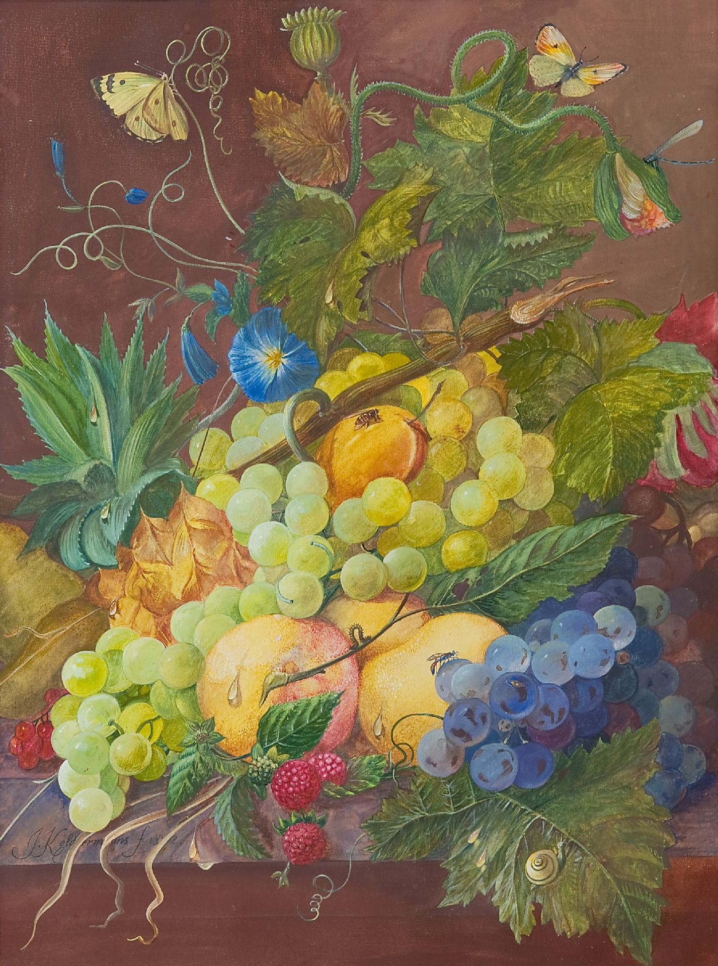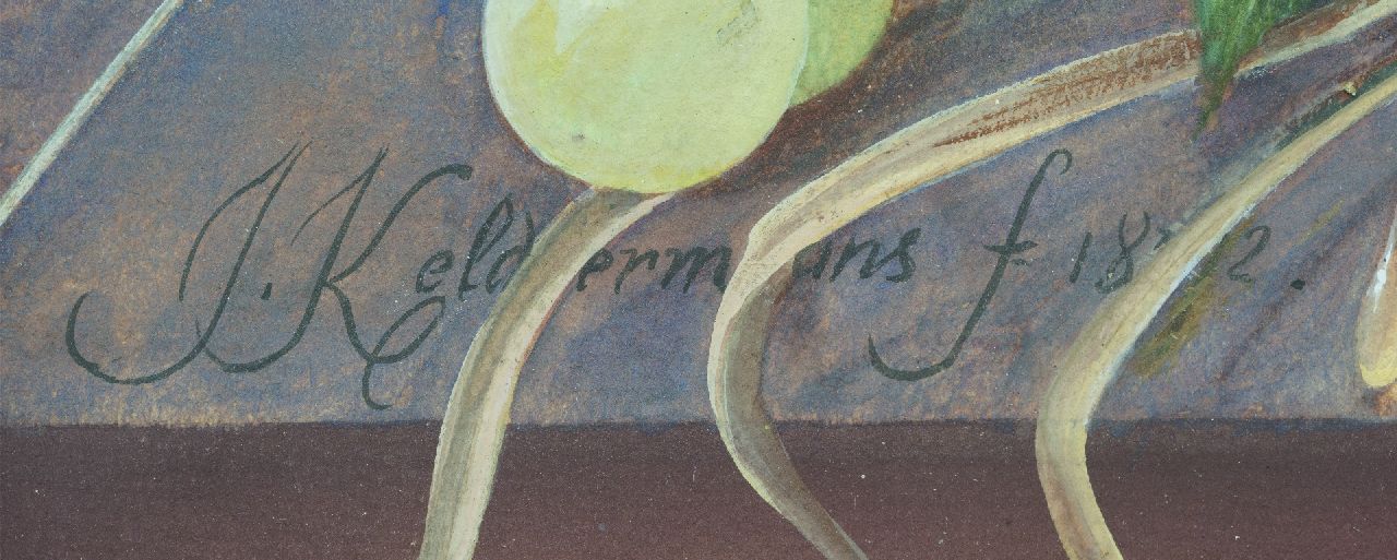 J. Keldermans kunstwerk • aquarel • tekening • te koop Stilleven met bloemen en fruit