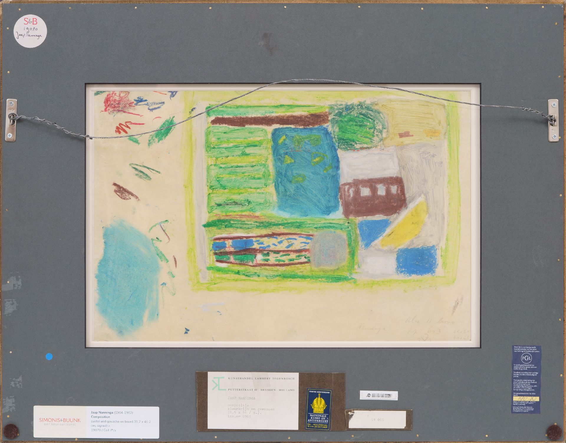 De Haagse schilder Jaap Nanninga behoorde tot de schilders die pas na de Tweede Wereldoorlog de stap maakten van figuratief naar abstract. Van invloed op zijn ontwikkeling was onder andere het abstracte werk van Geer van Velde, die hij in 1946 in Zuid-Frankrijk ontmoette. Nanninga bouwde zijn composities op uit vormen die hij intuïtief op het doek zette.