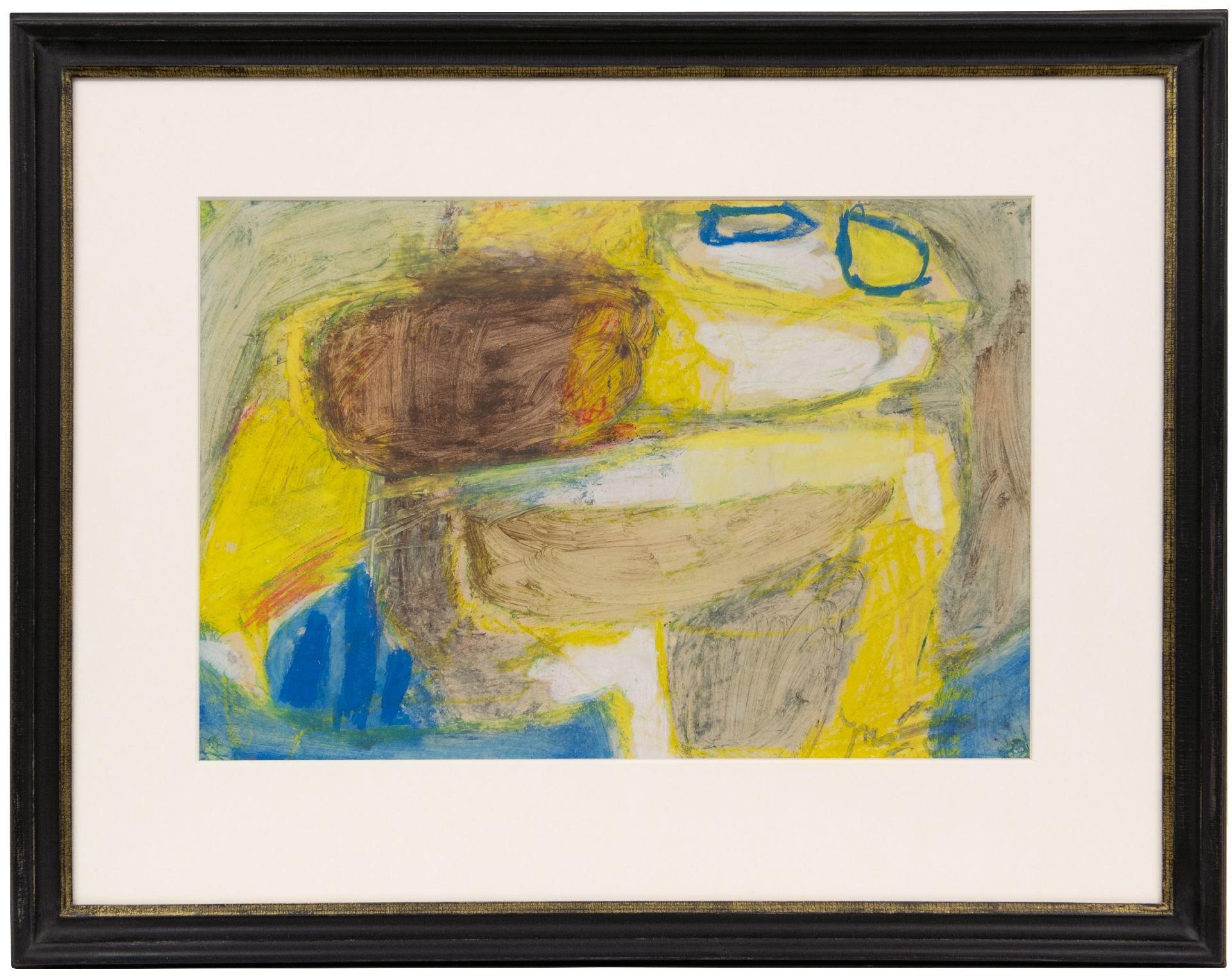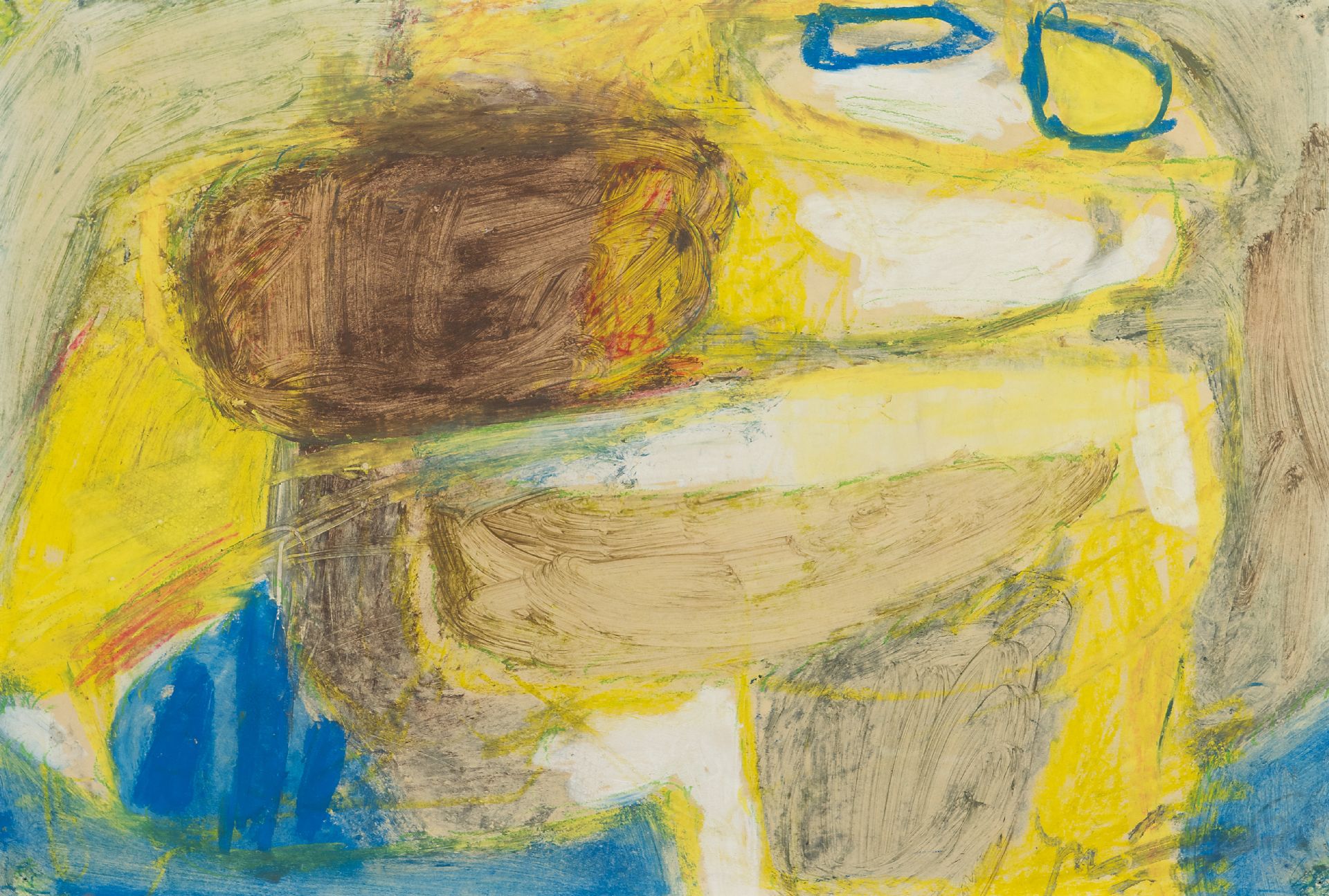 Jaap Nanninga | Compositie op blauw fond, gouache en krijt op papier, 48,0 x 61,5 cm, gesigneerd r.o. en gedateerd '59