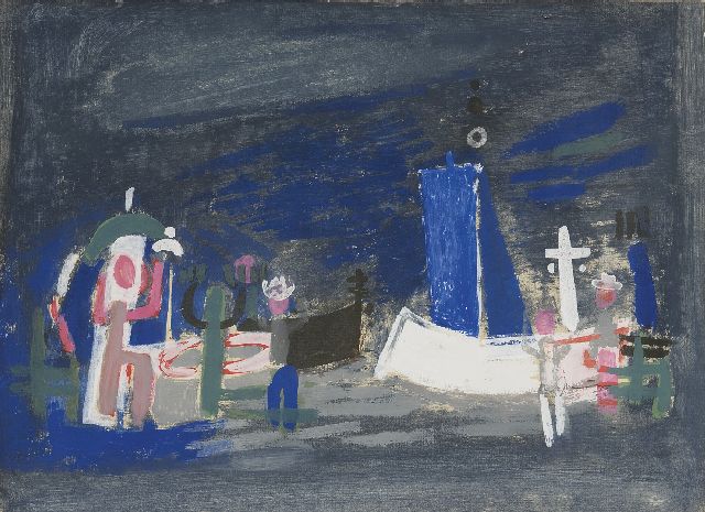 gouache op papier 44,5 x 50,5 cm, gesigneerd rechtsonder en gedateerd '61