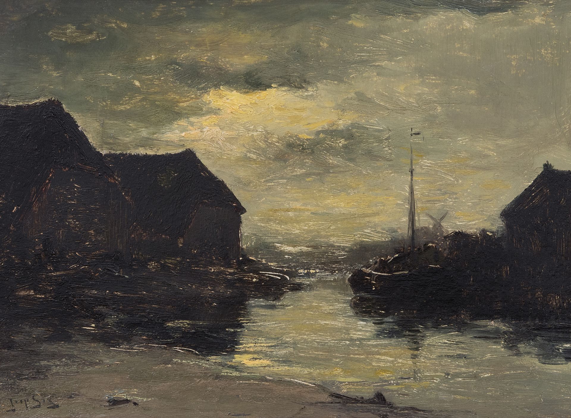 Jaap Sax kunstwerk • schilderij • te koop Binnenhaven bij avond