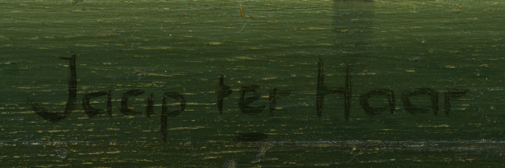 Jaap ter Haar was aanvankelijk alleen bekend als auteur, onder andere van de overbekende serie avonturen van Saskia en Jeroen. Na zijn 'Geschiedenis van de Lage Landen', een boek waaraan hij vijf jaar werkte, had Ter Haar genoeg van het 'geploeter' achter de schrijfmachine. Hij begon meubels te timmeren en te beschilderen. Daarbij raakte hij zo gefascineerd door de verf, dat hij zich voortaan alleen nog maar aan het schilderen wijdde. Landschappen en stadsgezichten waren zijn favoriete onderwerpen. Ook werd hij geïnspireerd door gebeurtenissen in zijn dagelijks leven in Hilversum en later Blaricum. Door de bewust-naïeve stijl die de schilder hanteert behoort hij tot de de groep Hollandse naïeve- of zondagschilders. En op allerlei plaatsen Niet alleen in Nederland maar ook in het buitenland werden exposities van zijn werk ingericht, zoals in Grasse Zuid Frankrijk, Carmel in Californië, New York, op Curaçao en in Singapore.