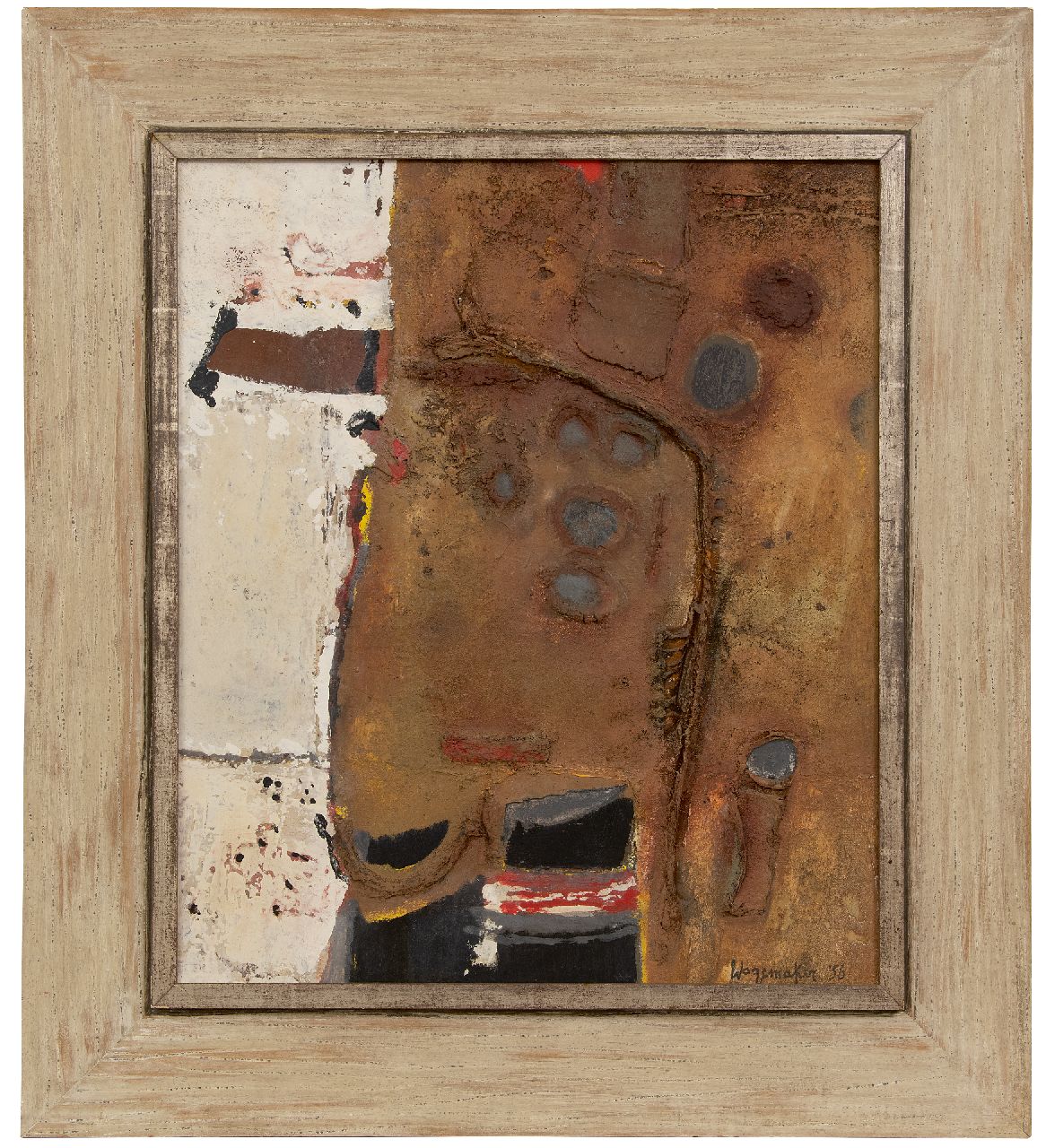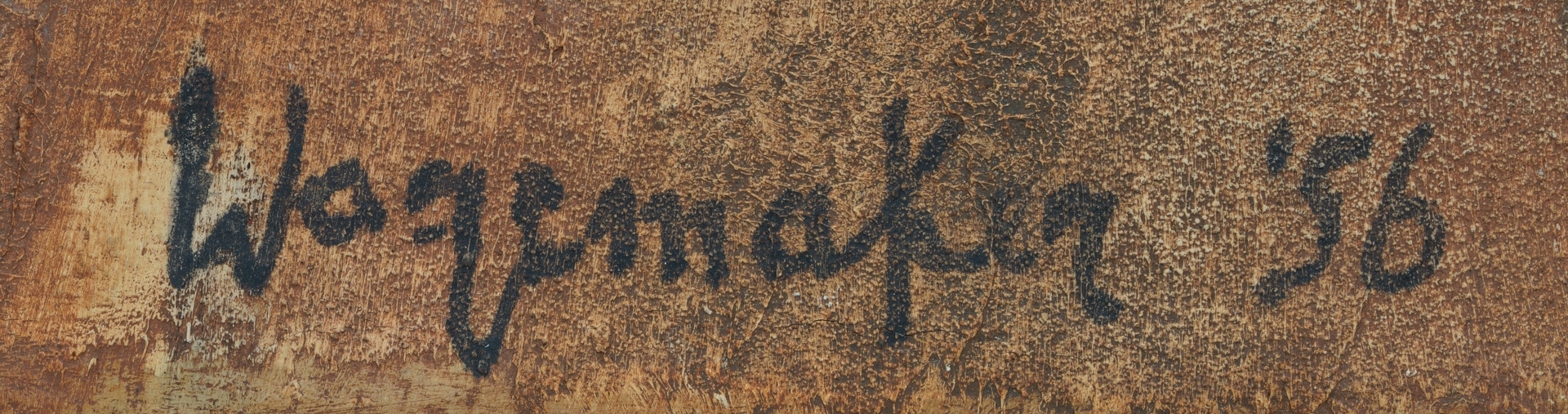 gemengde techniek op doek 65,3 x 55,5 cm, gesigneerd rechtsonder en gedateerd '56