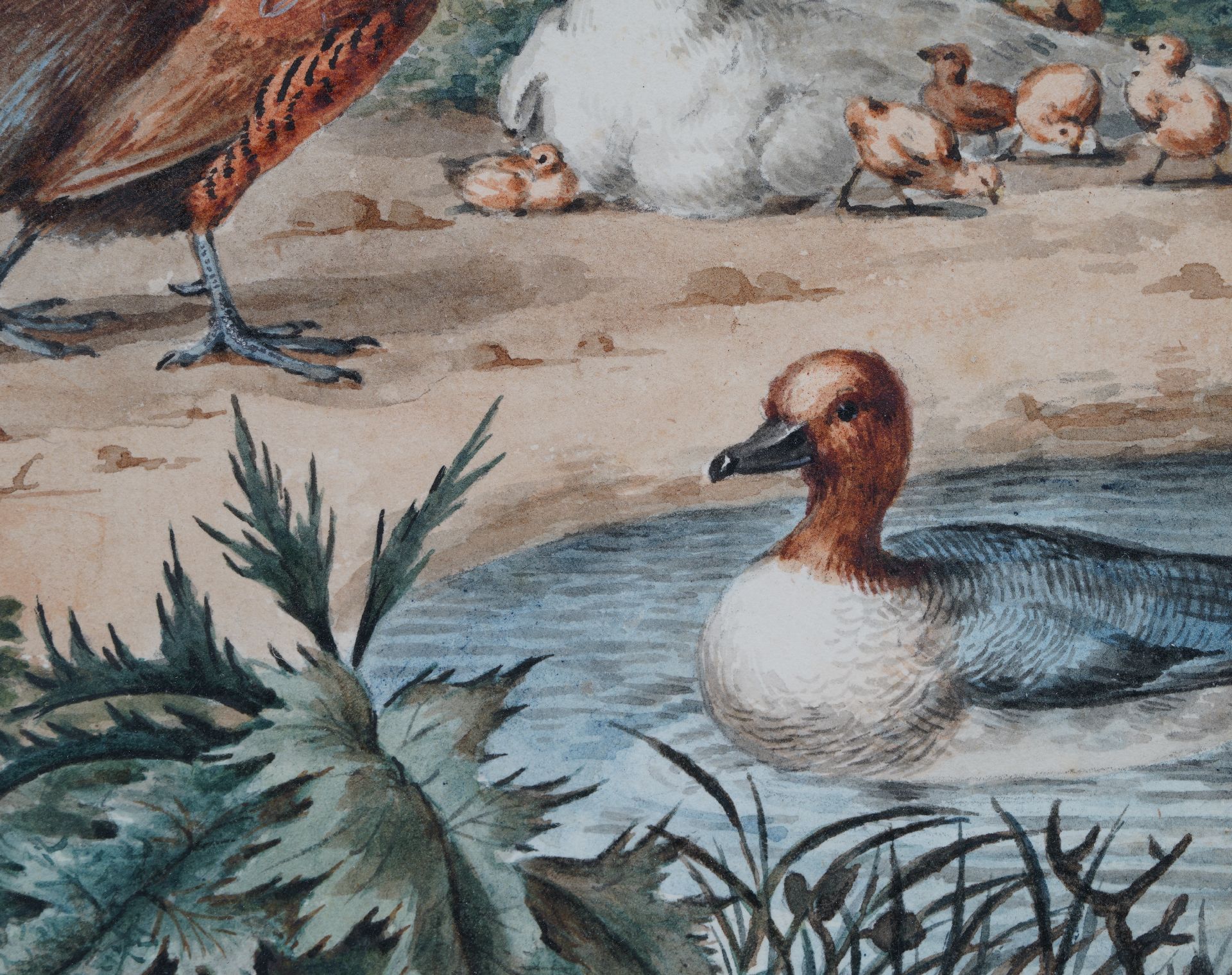 Jabez Heenck kunstwerk • aquarel • tekening • te koop Een Tafeleend en andere vogels in een parklandschap