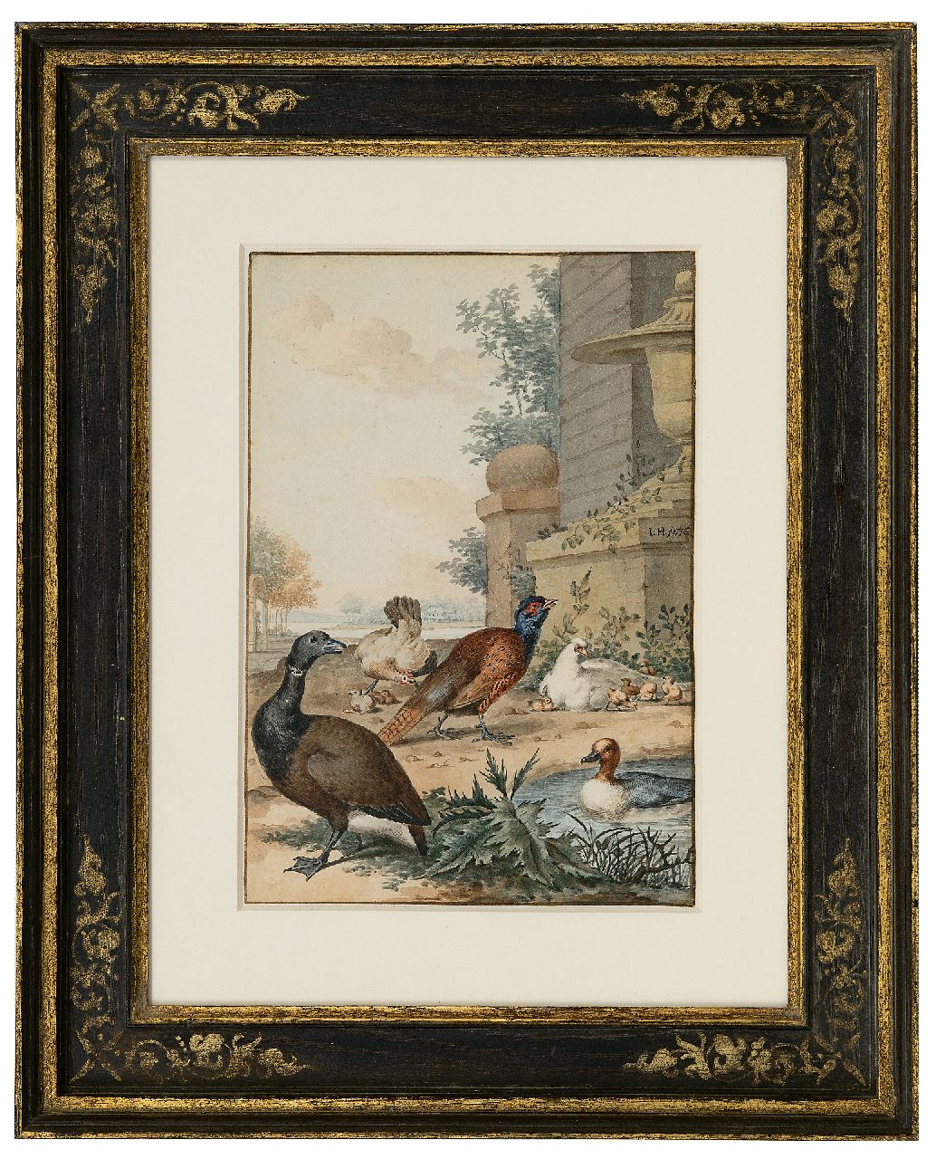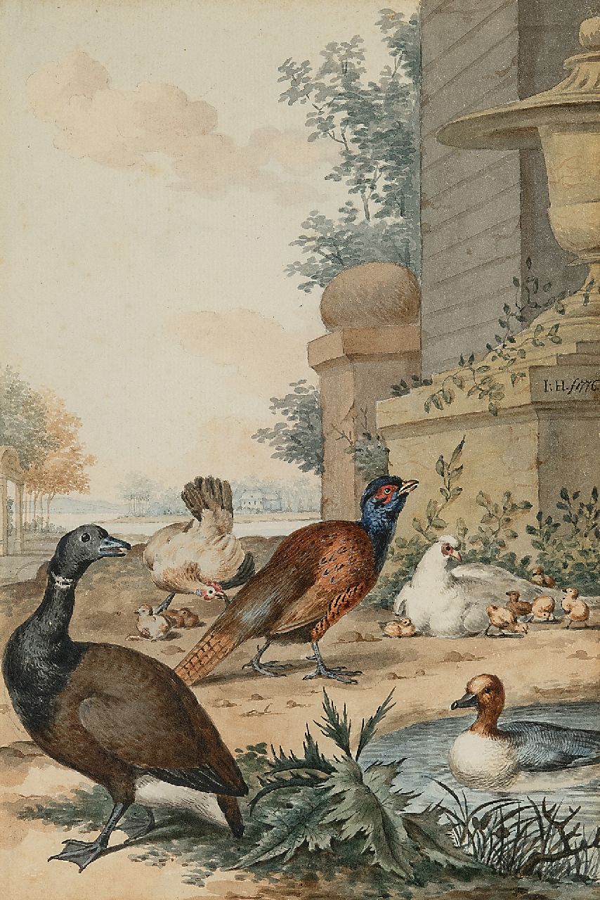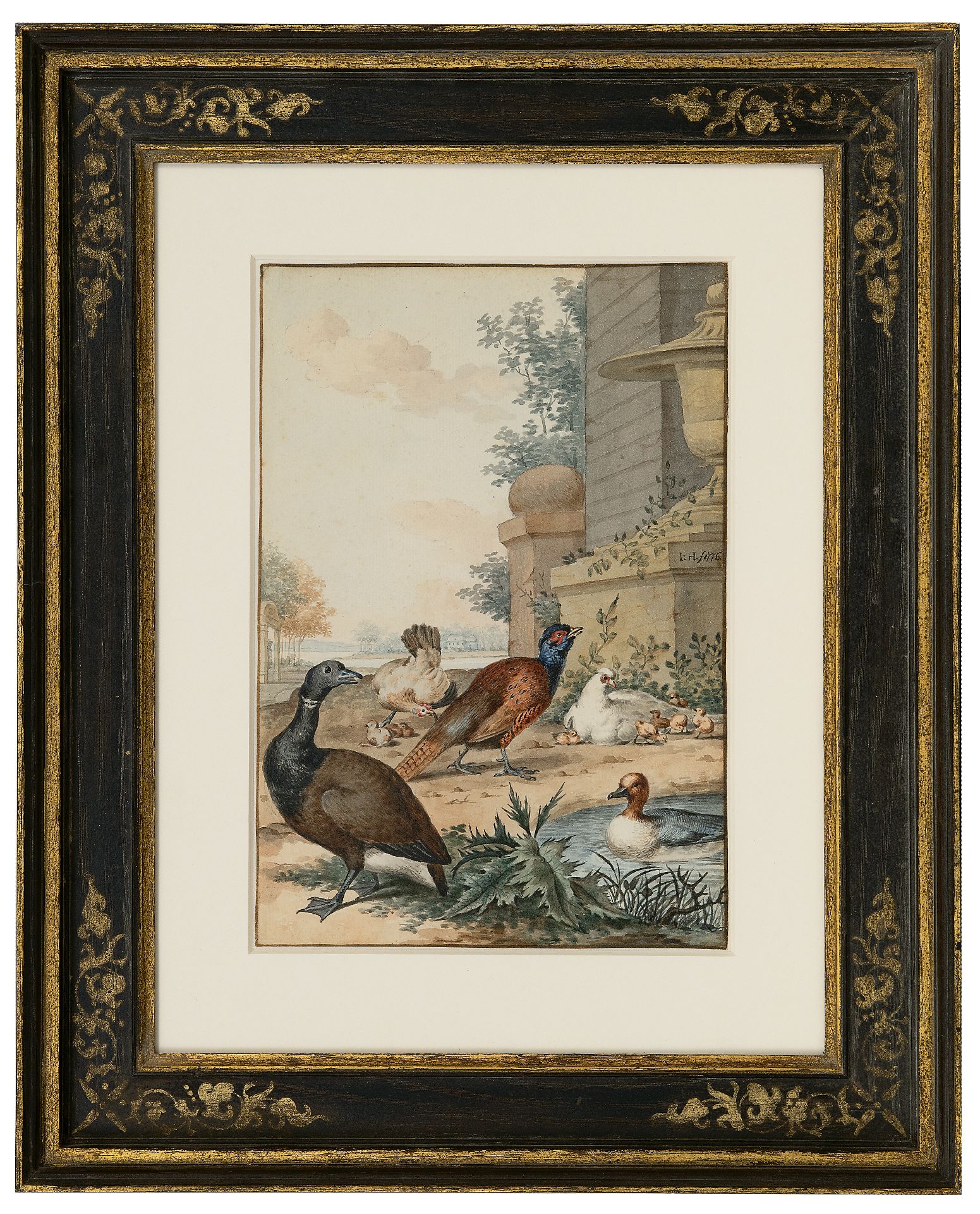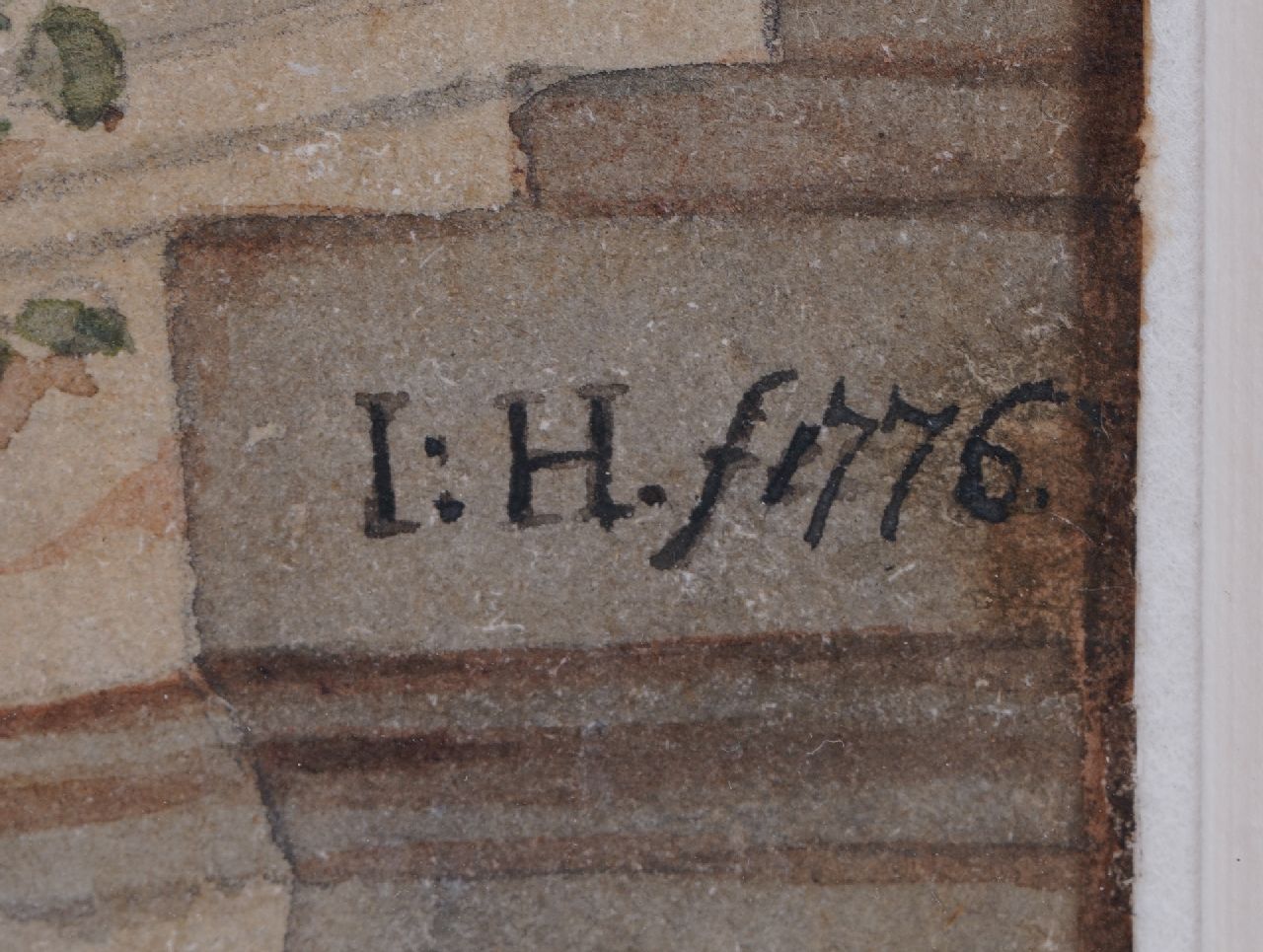 aquarel op papier 26,5 x 18,1 cm, gesigneerd rechts van het midden met monogram en gedateerd 1776