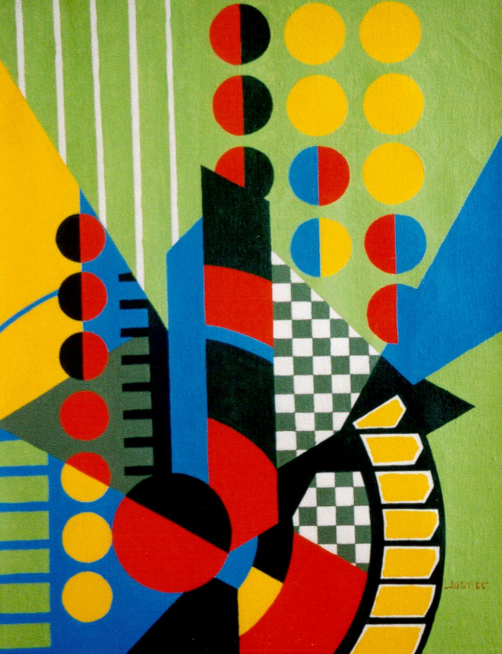 De Amerikaanse schilder Jack Justice werd in 1941 geboren. Al vroeg toonde hij belangstelling voor de ontwerpen van Frank Lloyd Wright, en zijn geometrische composities werden door Lloyd Wright en Bruce Goff gebruikt bij hun lezingen over organisch bouwen. Zijn grote doorbraak kwam begin jaren zestig, met veel eenmanstentoonstellingen in Los Angeles en omgeving.