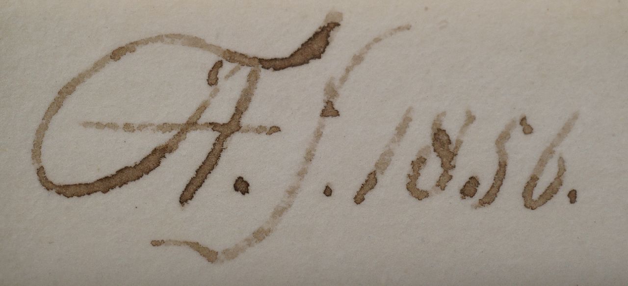 aquarel op papier 10,4 x 14,9 cm, gesigneerd verso met monogram en gedateerd 1856 verso