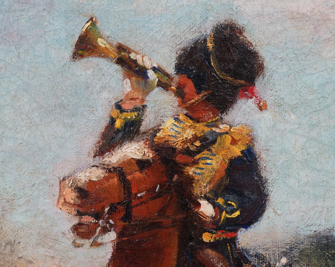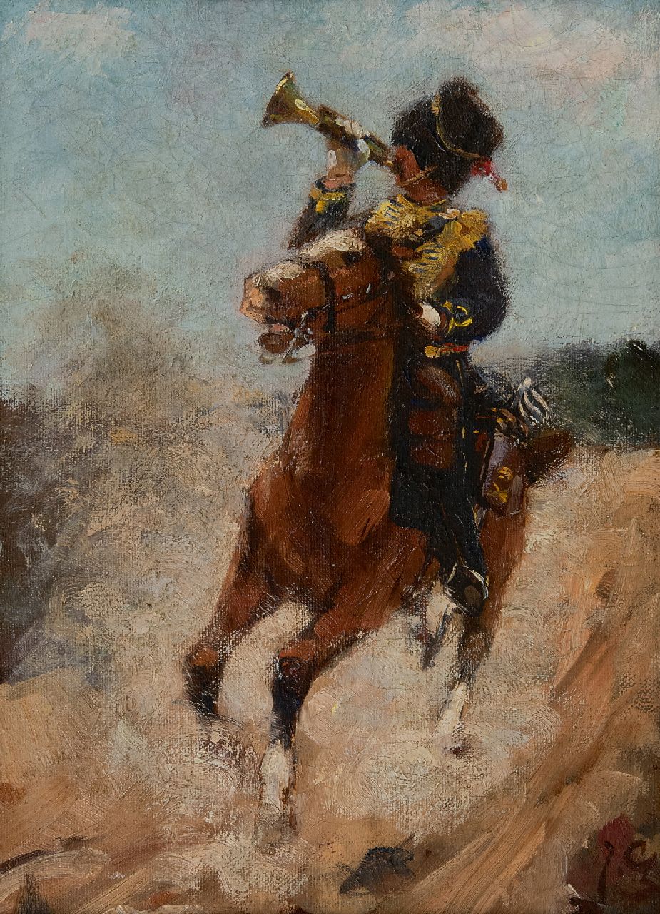 Jacob Hendrik Geerlings kunstwerk • schilderij • voorheen te koop Gele rijder met trompet