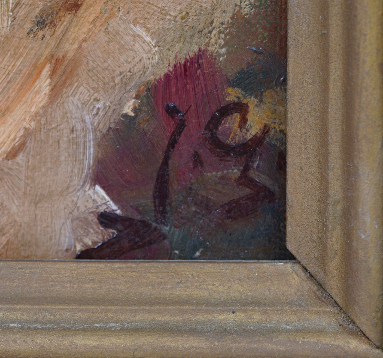 olieverf op doek 32,1 x 22,9 cm, gesigneerd rechtsonder met initialen