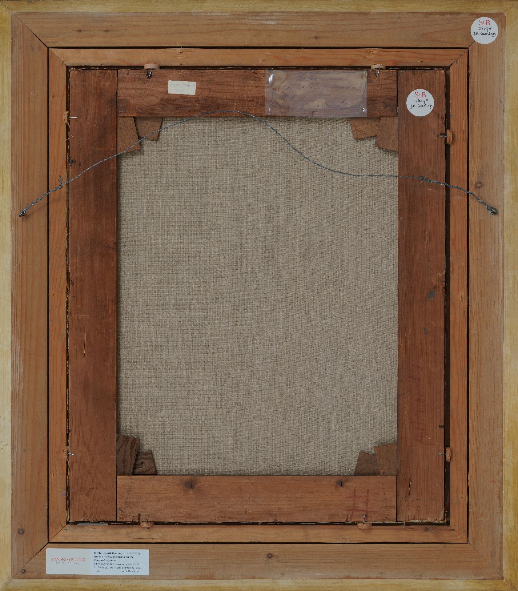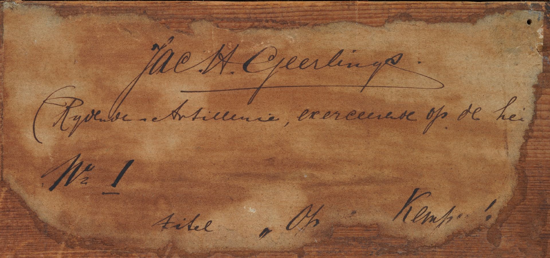 annotatie verso op etiket: 'Jac. H. Geerlings, Rijdende Artillerie, exerceerende op de hei, Nr. 1, titel 'Op de Kempen[bergerheide]''