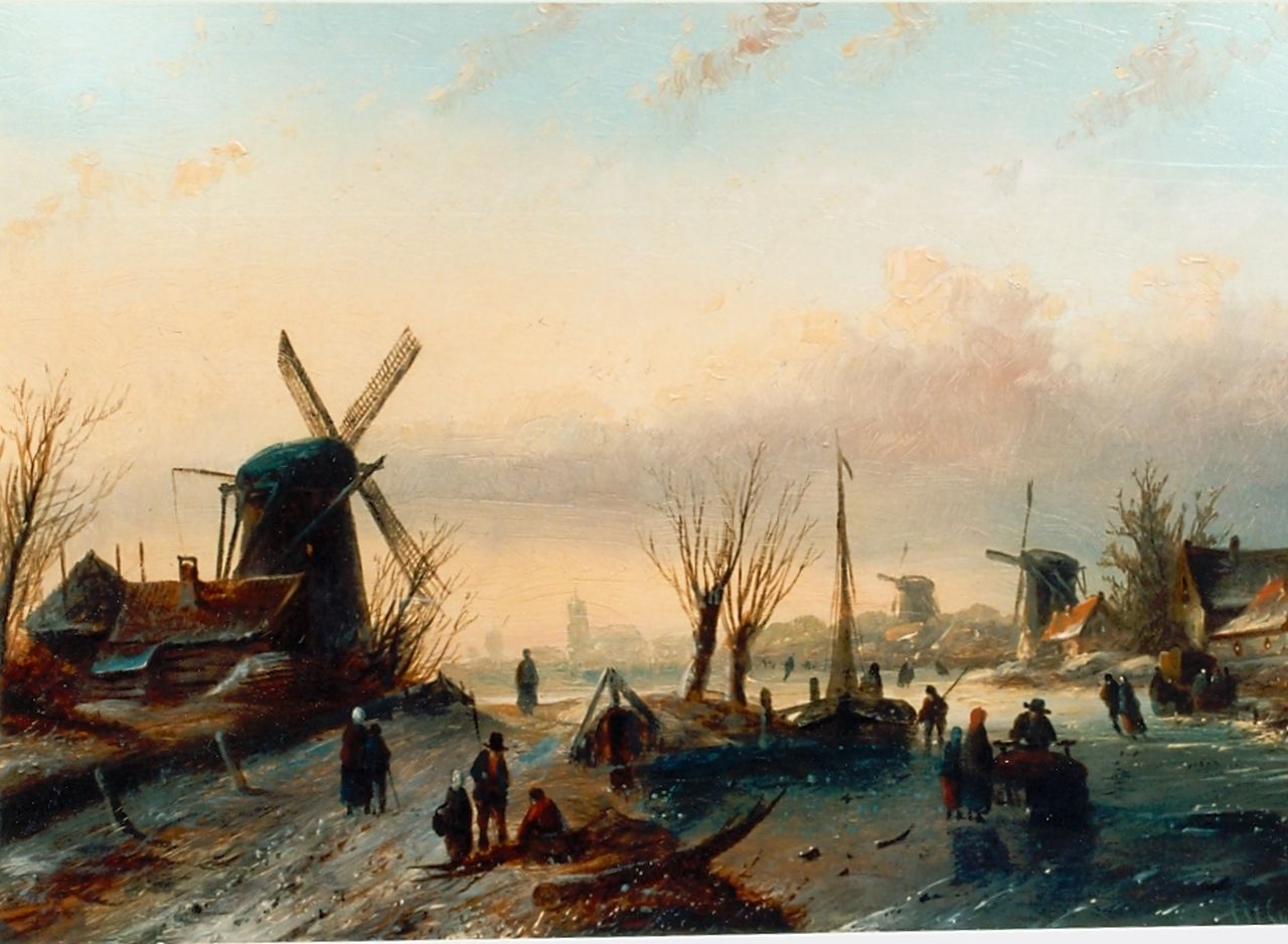 Jacob Jan Coenraad Spohler kunstwerk • schilderij • voorheen te koop Bedrijvigheid aan bevroren vaart