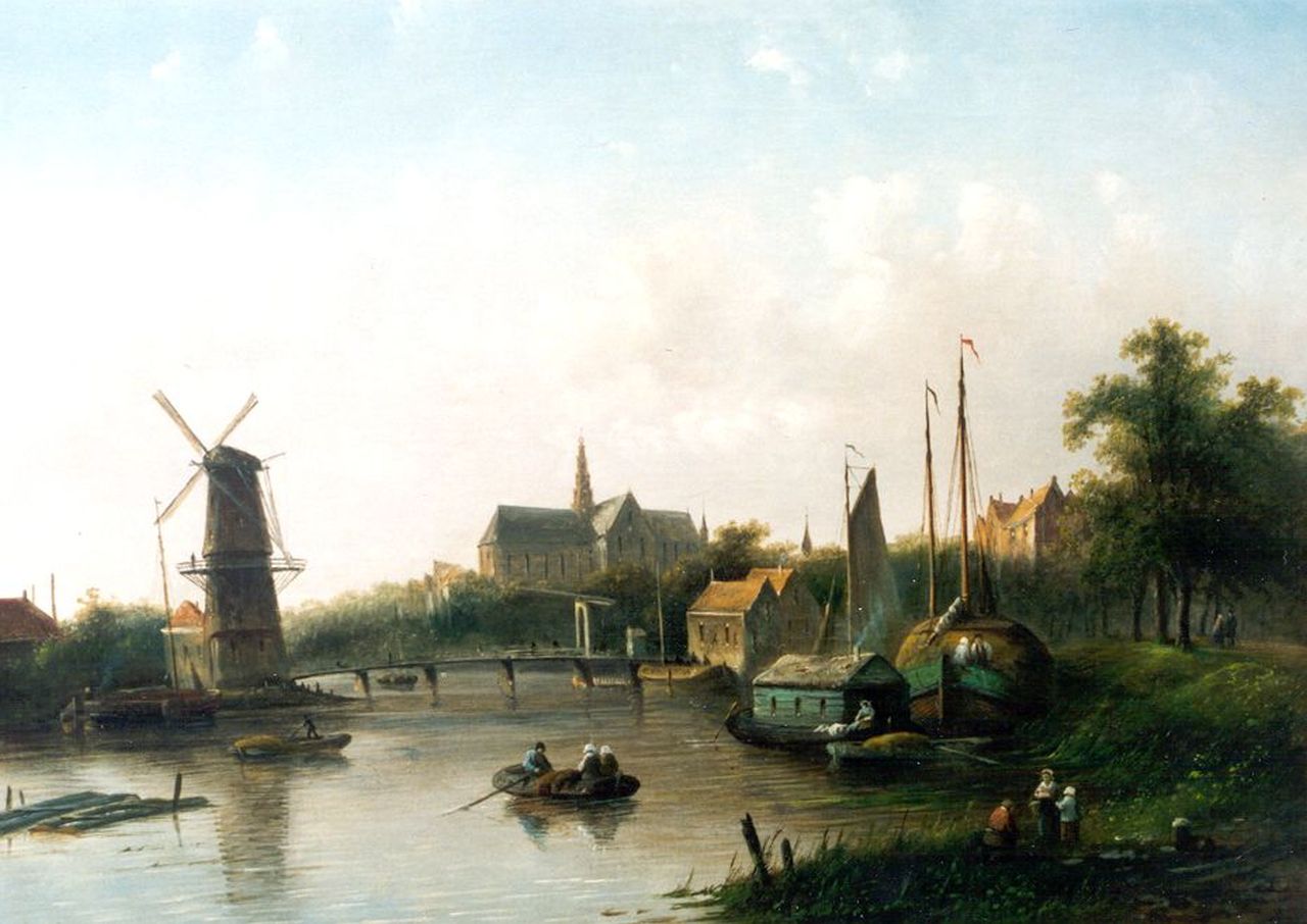 Jacob Jan Coenraad Spohler kunstwerk • schilderij • voorheen te koop Gezicht op Haarlem