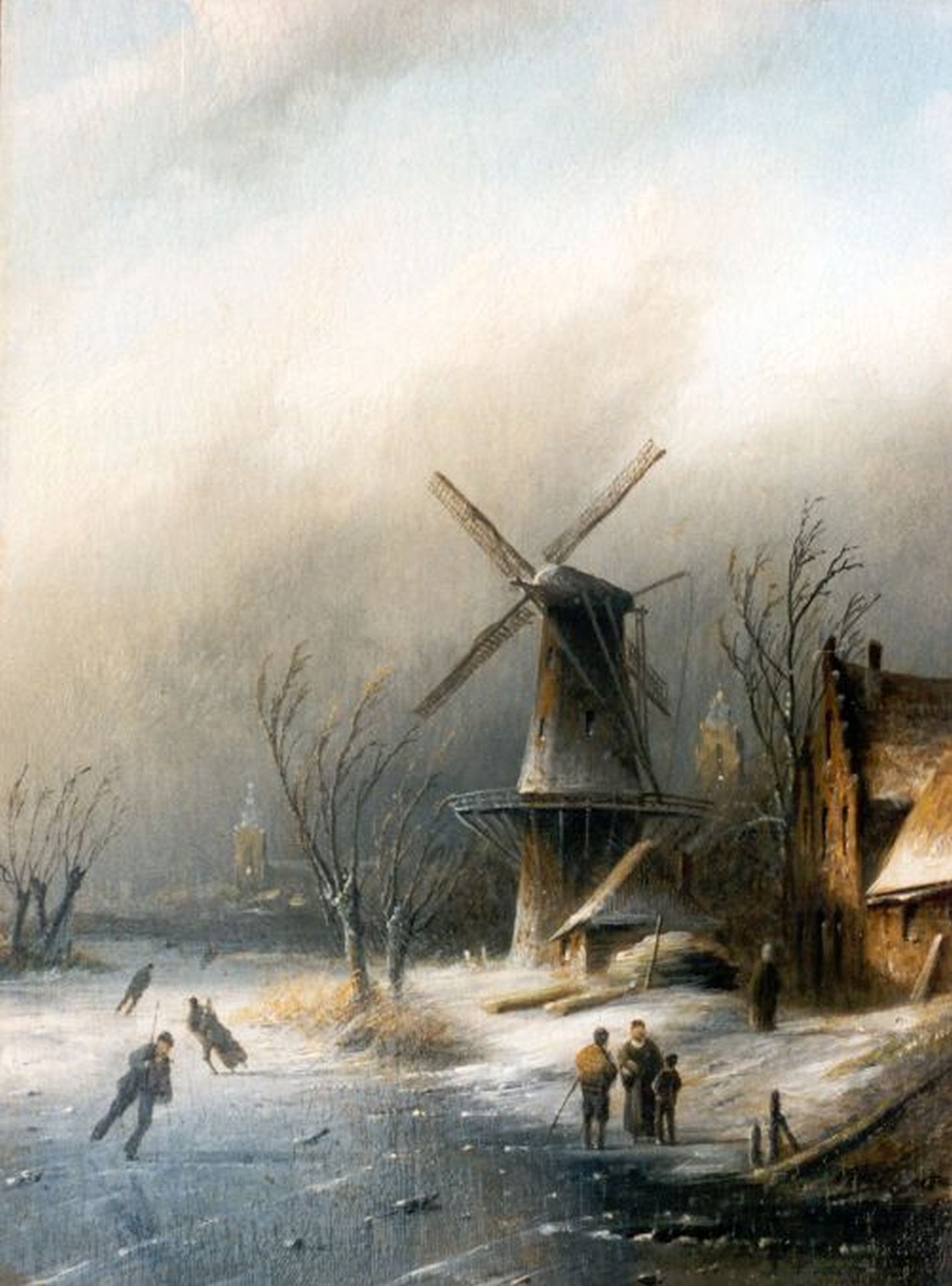 Jacob Jan Coenraad Spohler kunstwerk • schilderij • voorheen te koop Hollandse winter