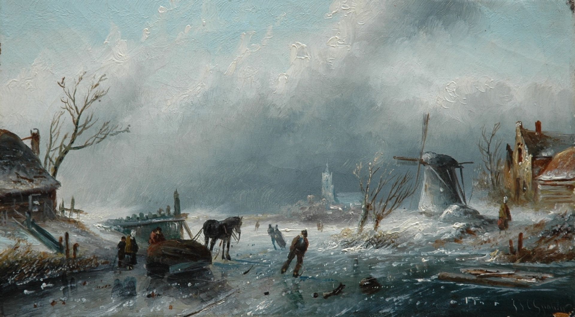 Jacob Jan Coenraad Spohler kunstwerk • schilderij • voorheen te koop IJsgezicht bij opkomende storm
