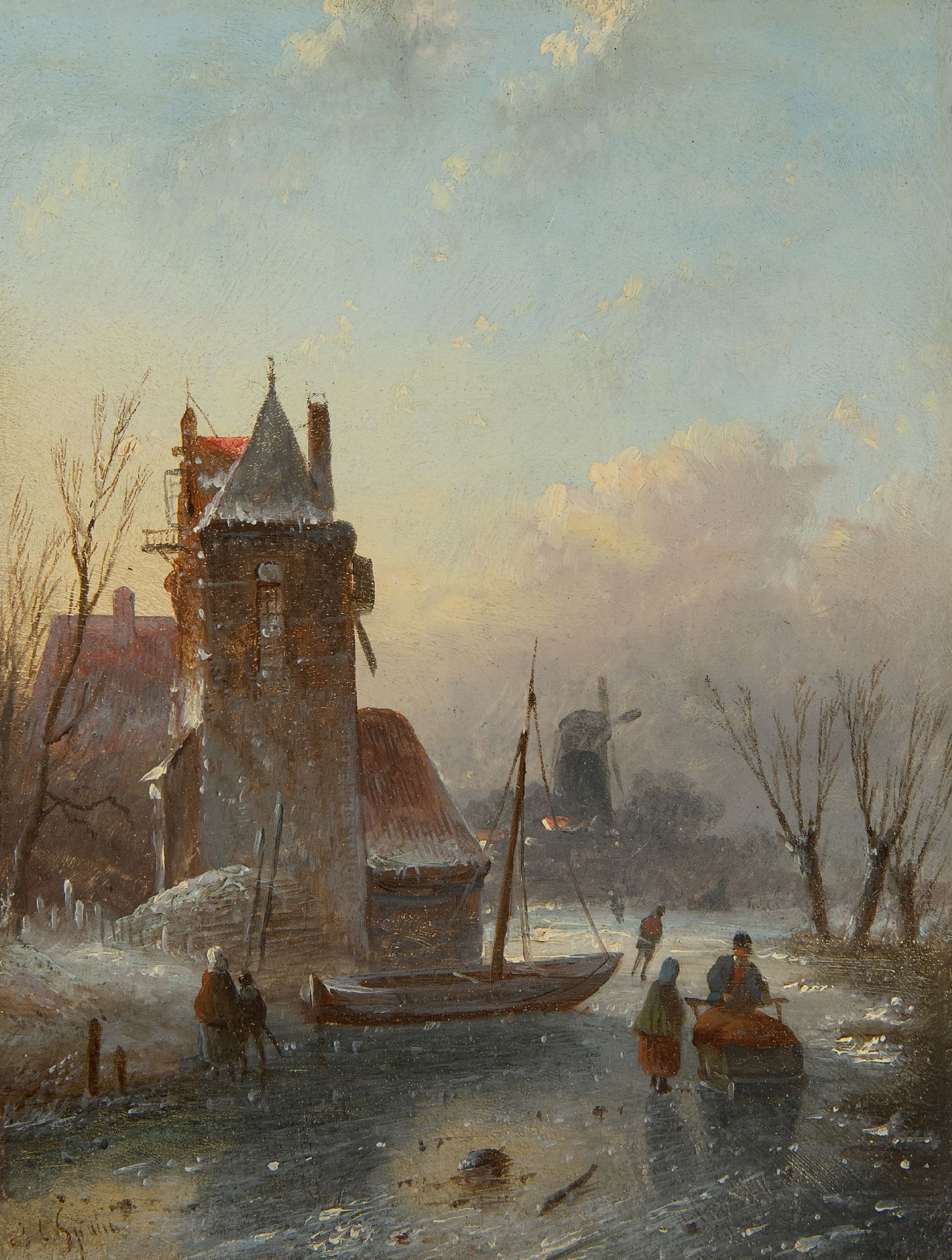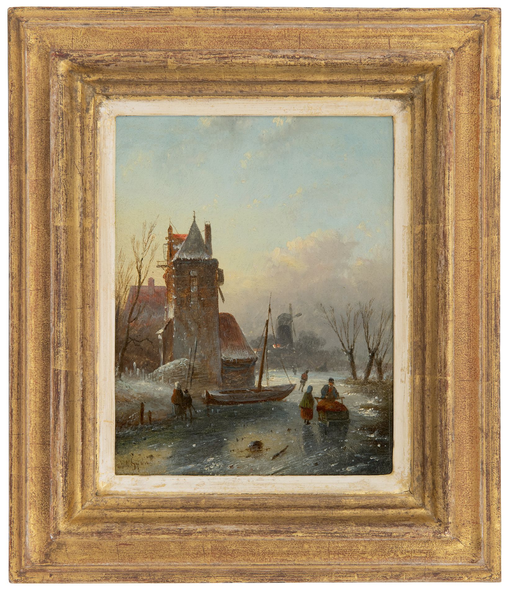Jacob Jan Coenraad Spohler kunstwerk • schilderij • voorheen te koop IJsgezicht met schaatsers