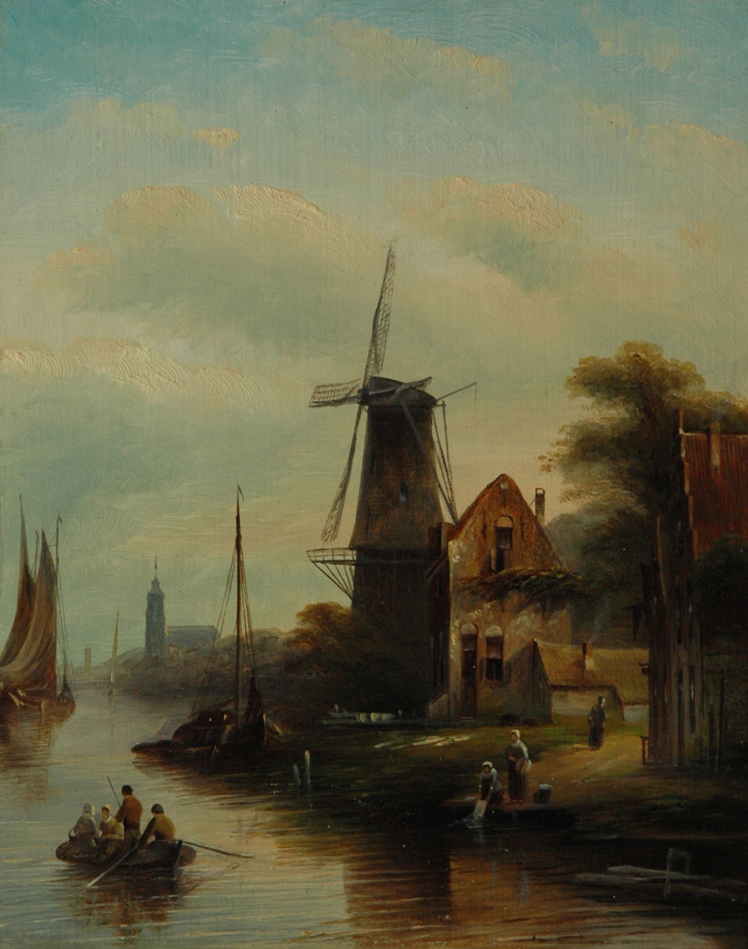 Jacob Jan Coenraad Spohler kunstwerk • schilderij • voorheen te koop Riviergezicht met molen