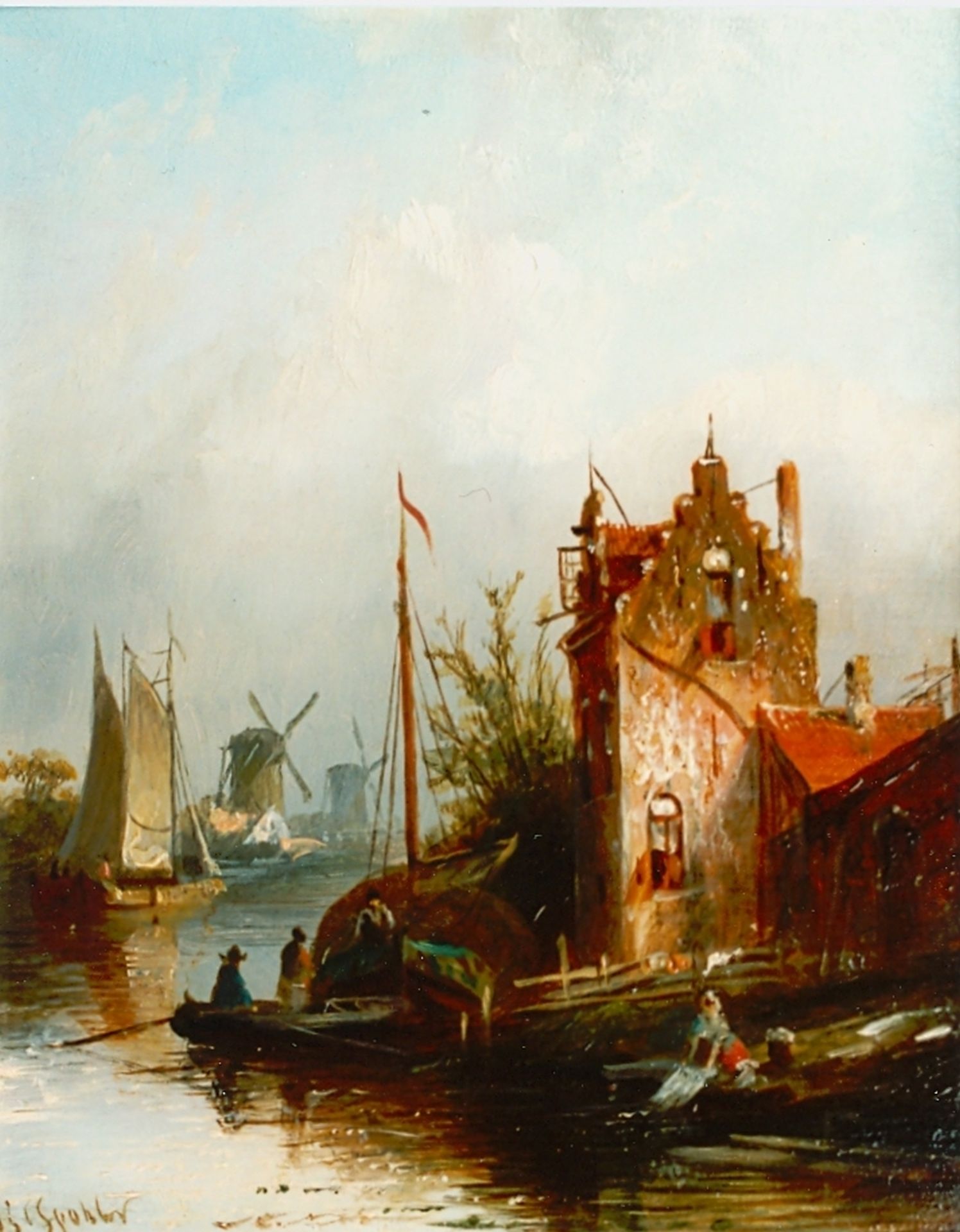 Jacob Jan Coenraad Spohler kunstwerk • schilderij • voorheen te koop Romantisch riviergezichtje