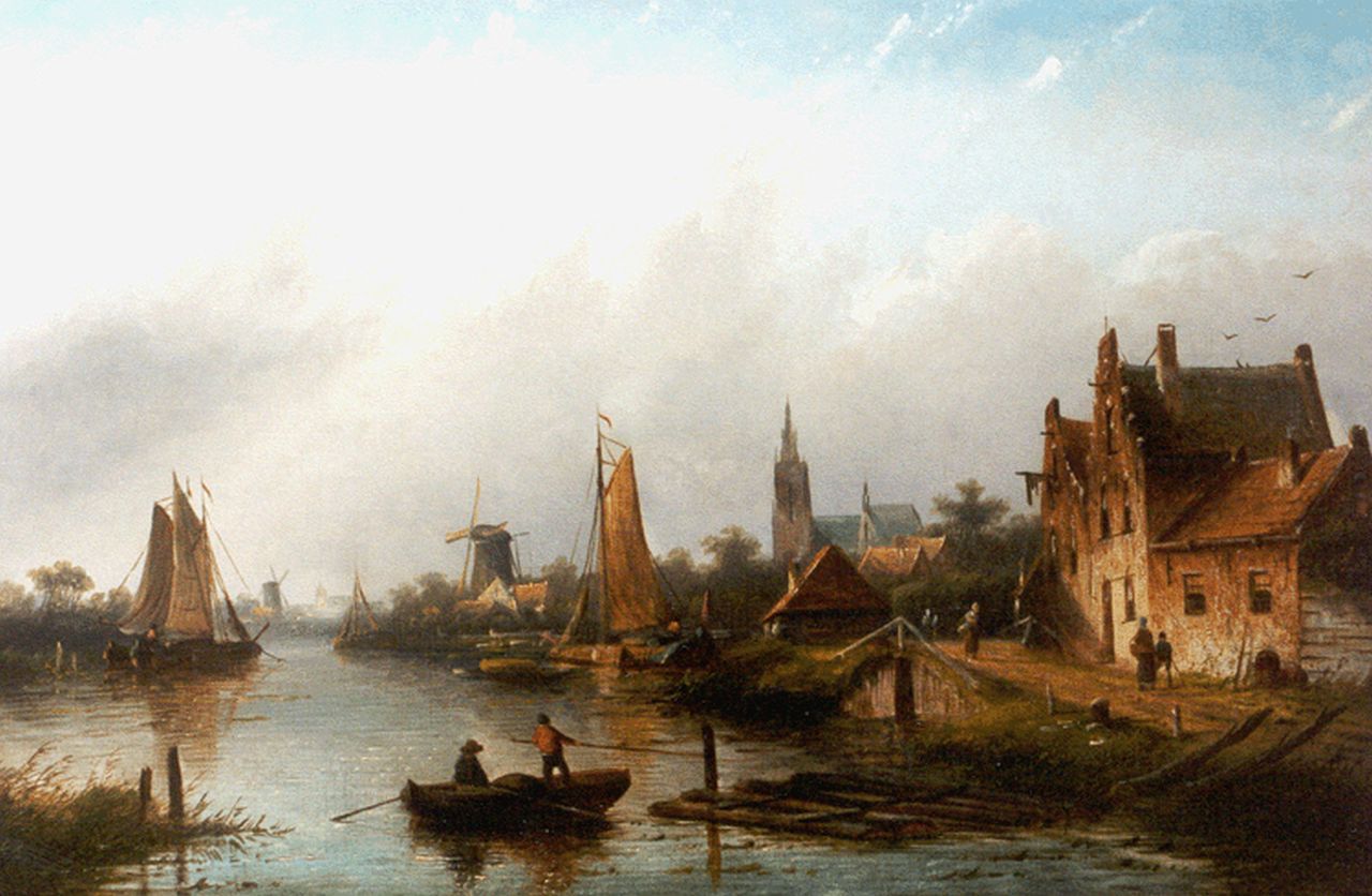 Jacob Jan Coenraad Spohler kunstwerk • schilderij • voorheen te koop Stad langs een rivier