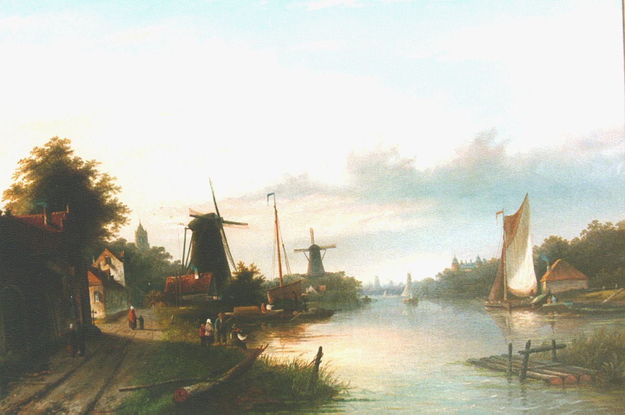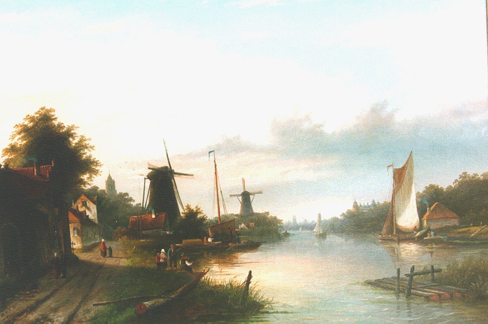 Jacob Jan Coenraad Spohler kunstwerk • schilderij • voorheen te koop Zomers rivierlandschap