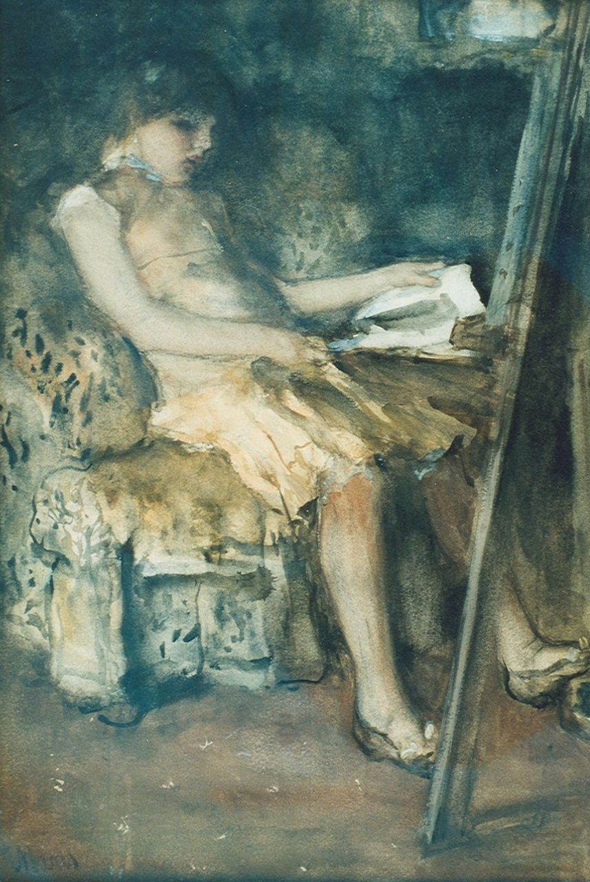 Jacob Maris kunstwerk • aquarel • tekening • voorheen te koop Het dochtertje van de schilder