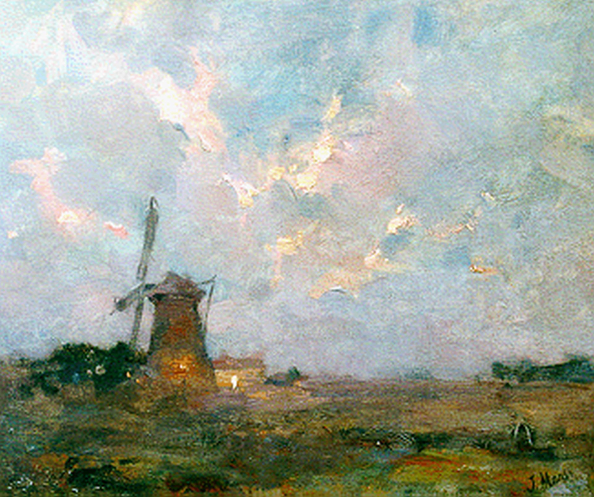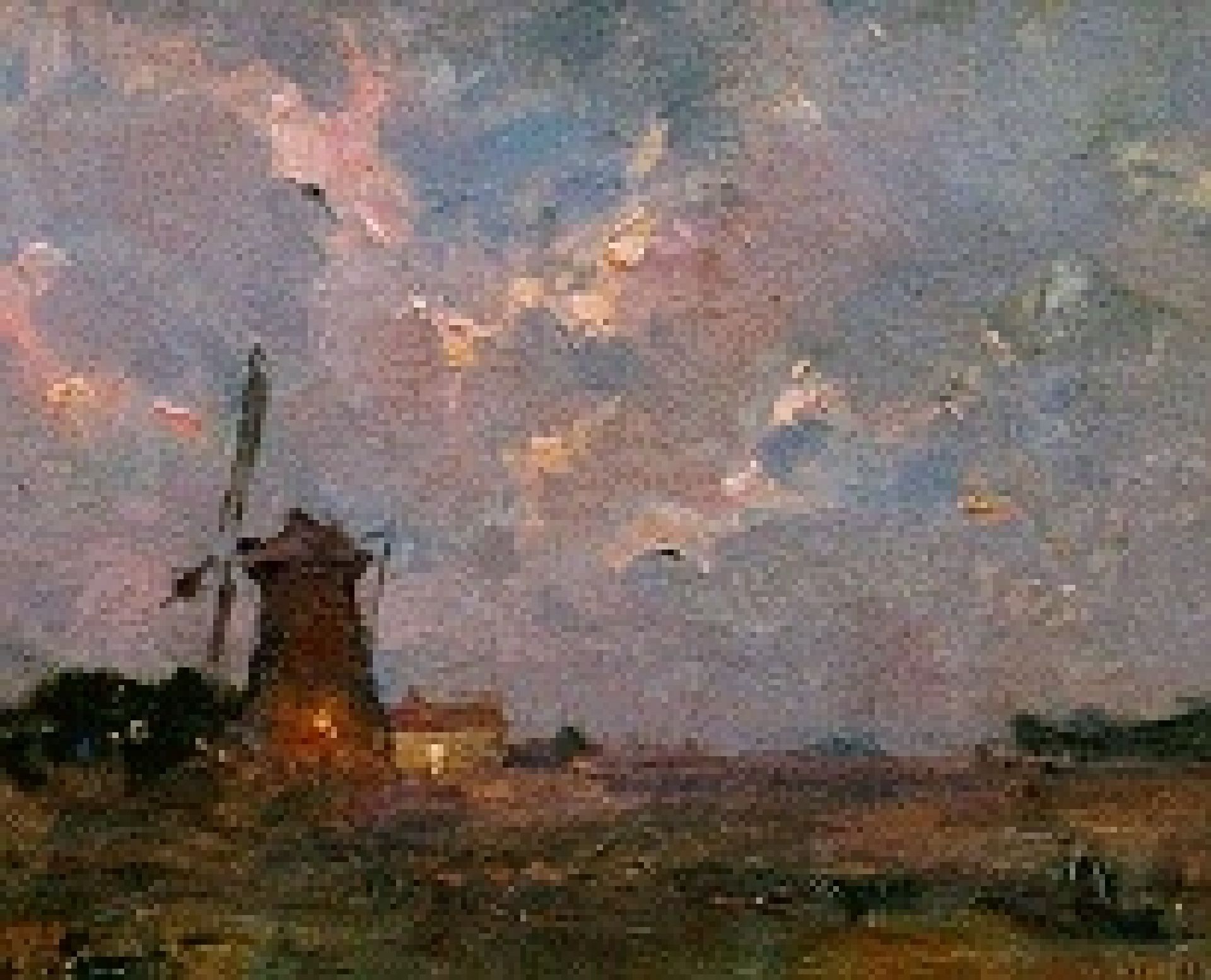 Jacob Maris kunstwerk • schilderij • voorheen te koop Avondstemming met molen