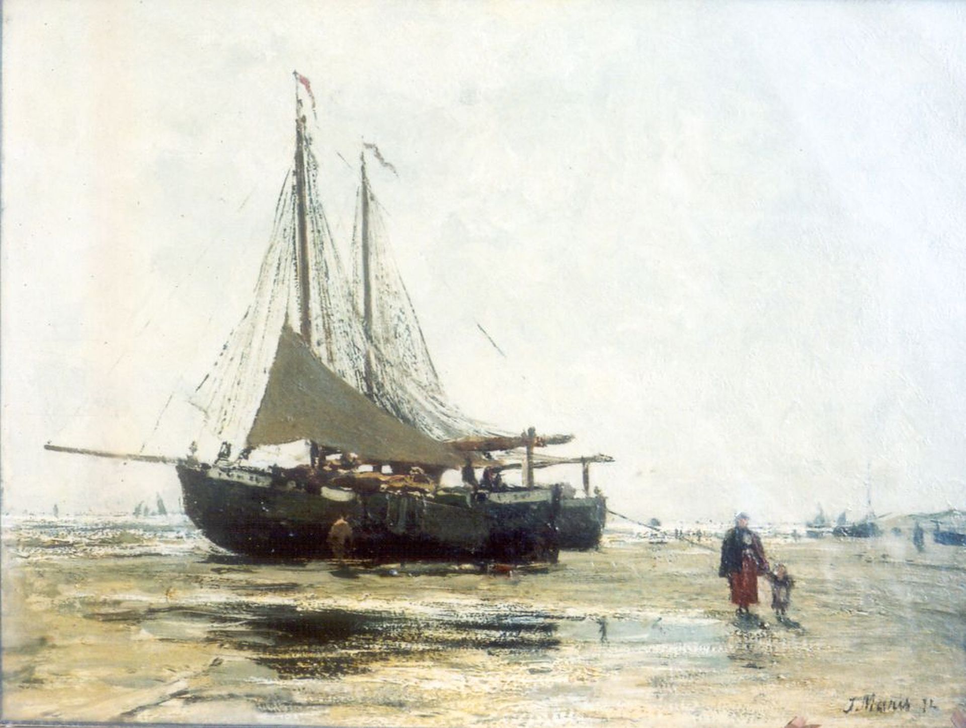 Jacob Maris kunstwerk • schilderij • voorheen te koop Bomschuiten op het strand