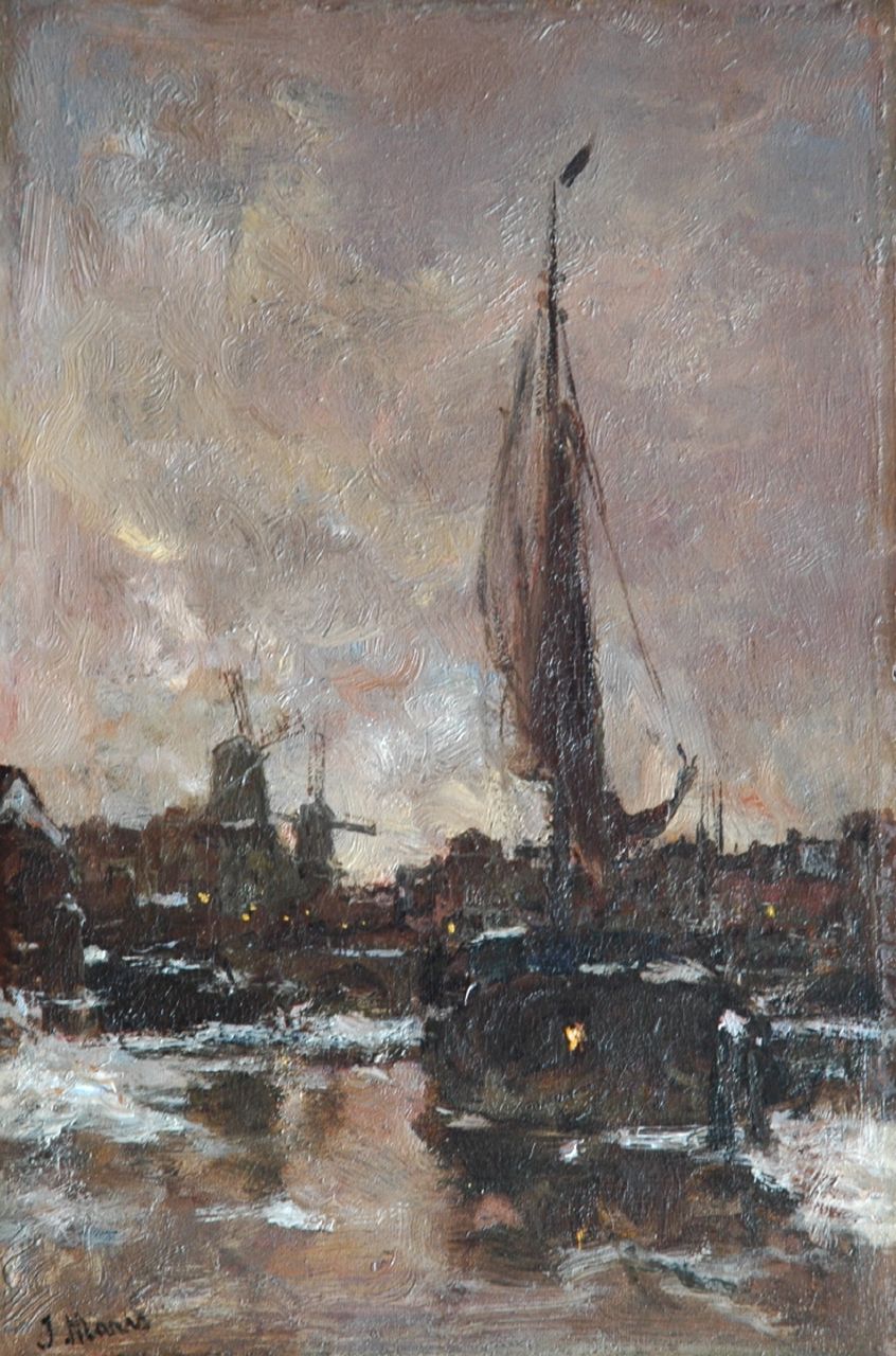 Jacob Maris kunstwerk • schilderij • voorheen te koop Gezicht op Schiedam op een winterse avond