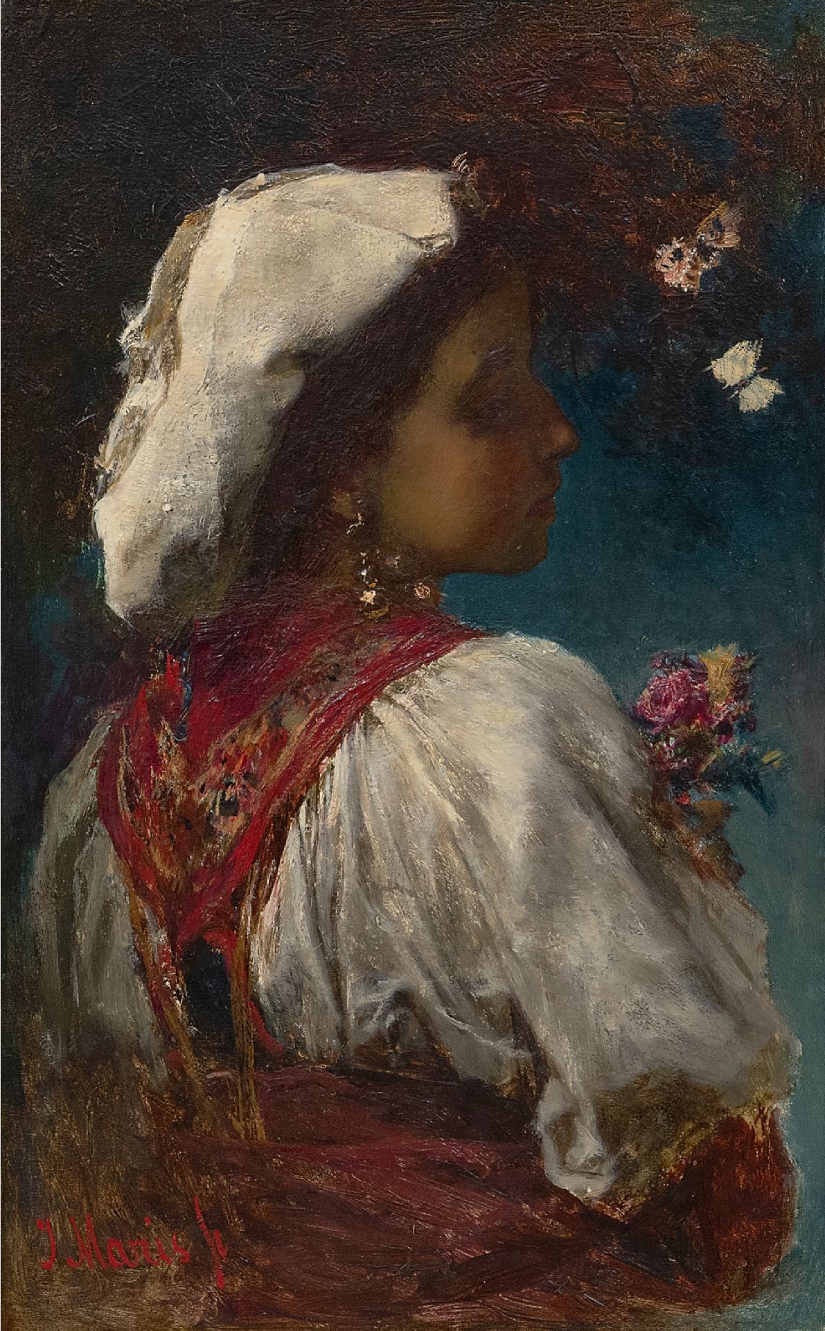 Jacob Maris kunstwerk • schilderij • voorheen te koop Italienne met bloemen en vlinders