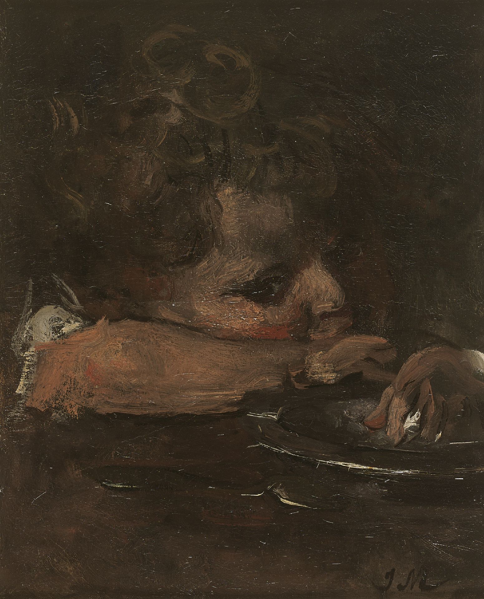 olieverf op doek 35,2 x 28,4 cm, gesigneerd rechtsonder met initialen