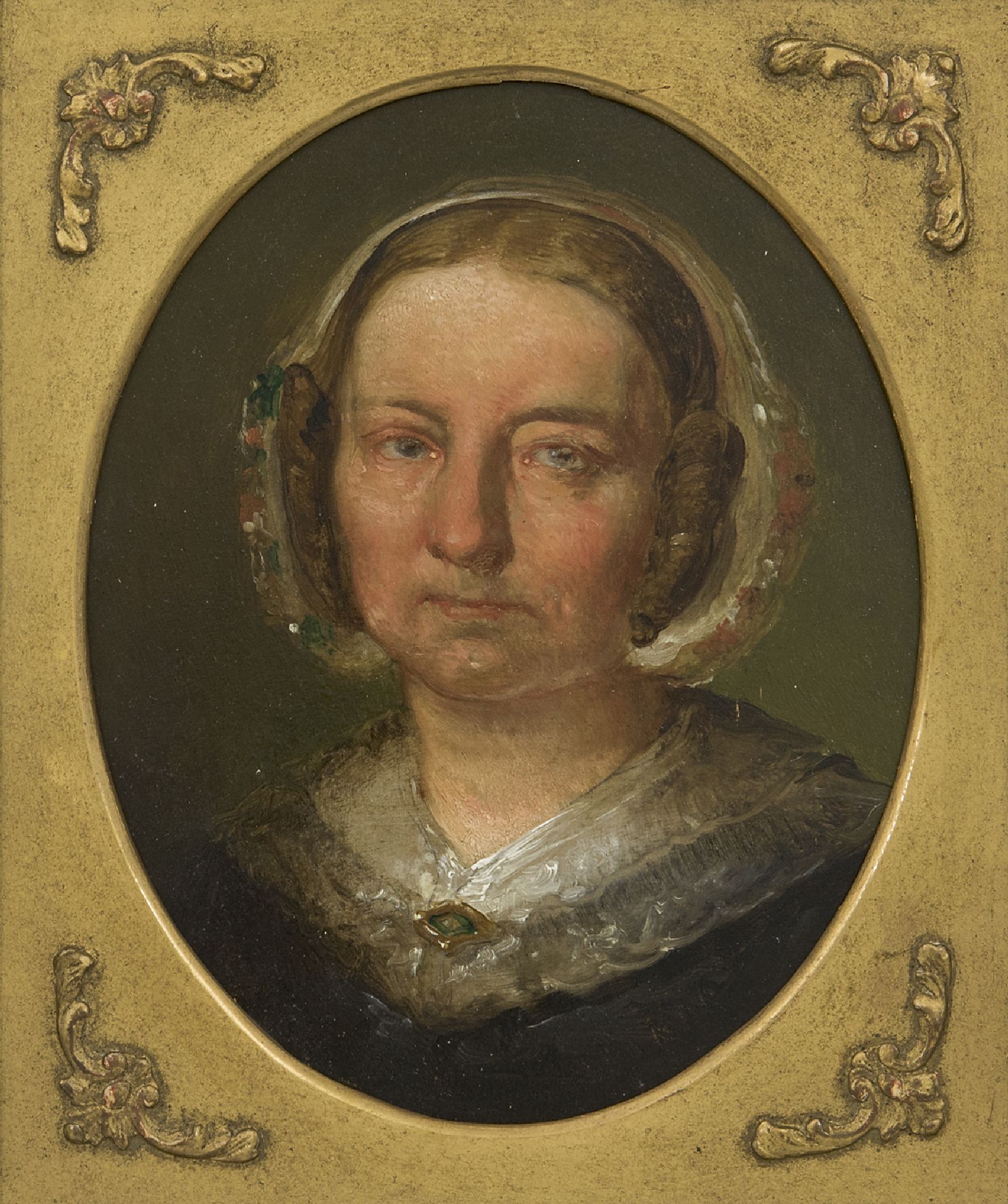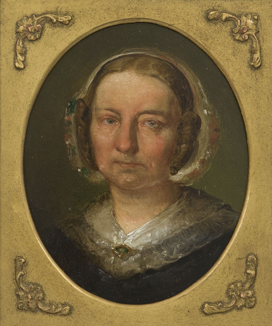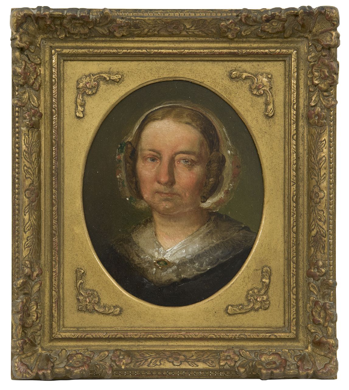 annotatie met verso echtheidsverklaring van Willem Matthijs Maris, zoon van de schilder: 'Portret van mijn grootmoeder geschilderd door mijn vader Jacob Maris, W. Maris Jr.'