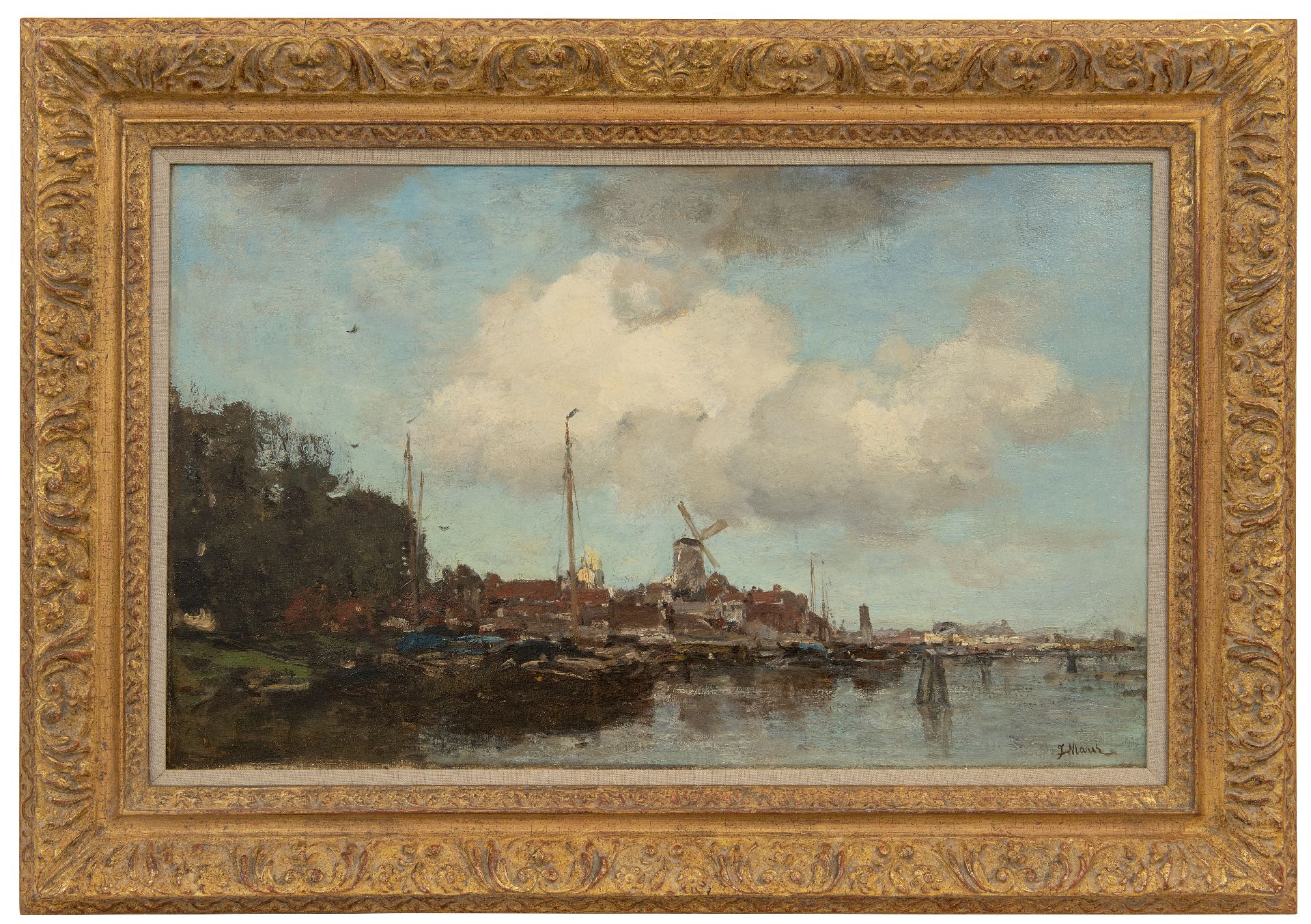 Jacob Maris was een van de belangrijkste schilders van de Haagse School. Als geen ander wist hij de zilvergrijze tonen van een Hollandse bewolkte dag vast te leggen en deze te combineren met diepe bruinen, okers en een enkele toets van kleur. Hij schilderde vooral landschappen, stadsgezichten en strandgezichten, liefst onder imposante wolkenluchten. Onder invloed van de Franse School van Barbizon werkte hij direct naar de natuur. Internationaal had hij groot succes en zijn werk werd verkocht tot in Schotland en de Verenigde Staten.
