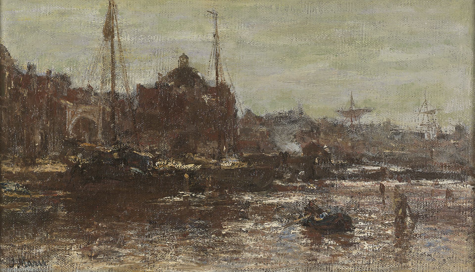 Jacob Maris kunstwerk • schilderij • voorheen te koop Stadsgezicht Amsterdam, met de Koepelkerk
