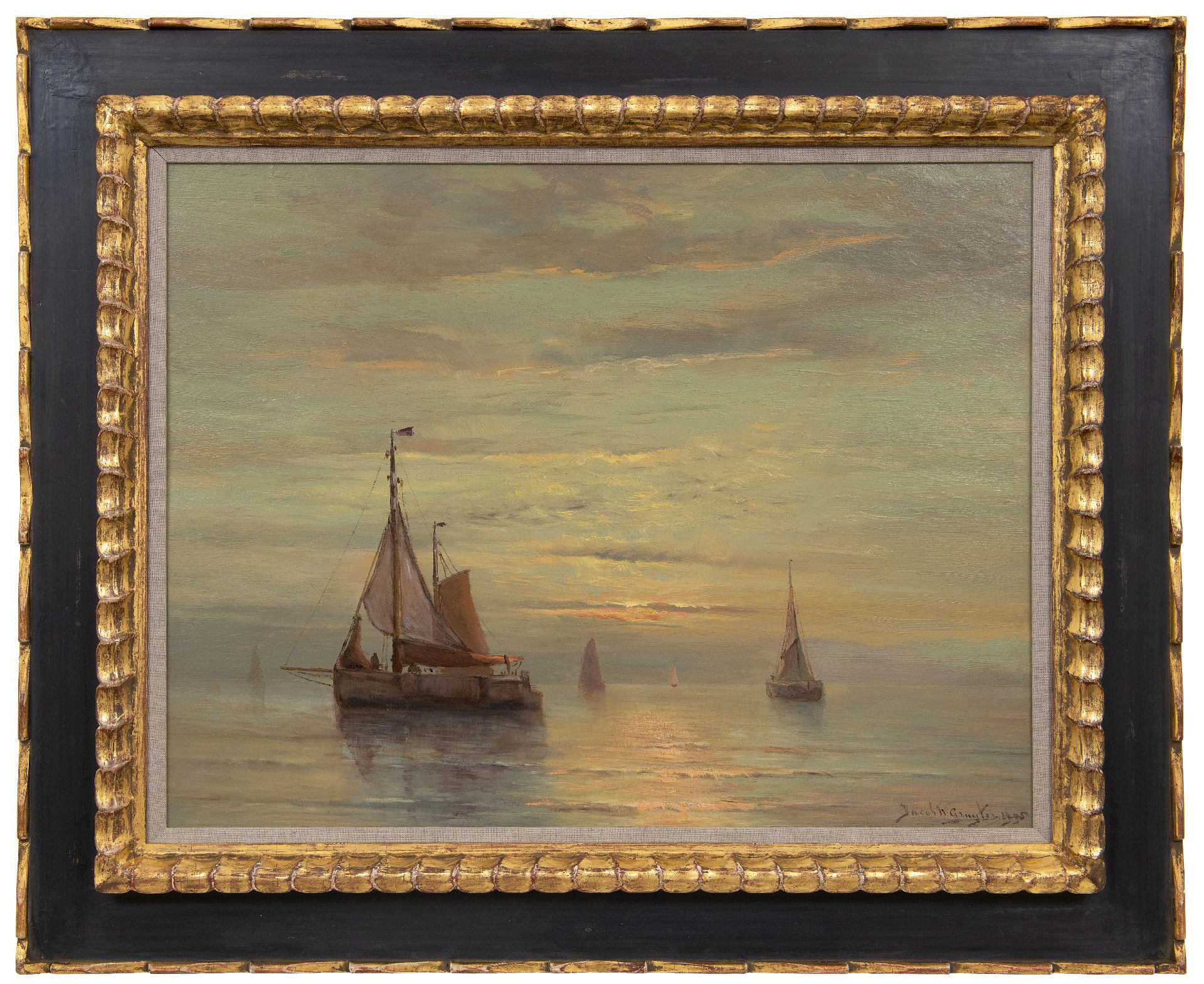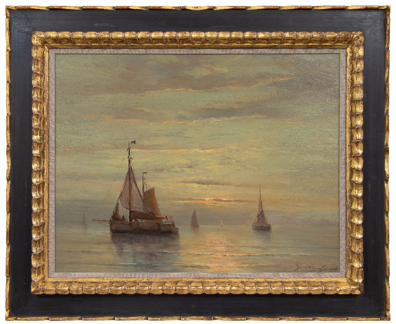 Jacob Willem Gruijter kunstwerk • schilderij • te koop Schepen op kalme zee bij zonsondergang