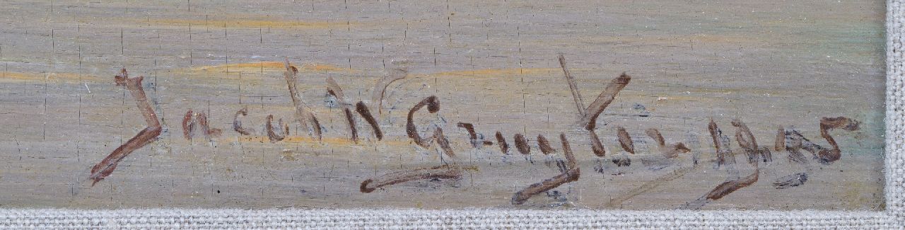 Jacob Willem Gruijter werkte in zijn geboortestad Amsterdam en later in zijn woonplaats Egmond aan Zee. Hij specialiseerde zich in het schilderijen van zee- en riviergezichten met schepen en trad daarmee in de voetsporen van zijn vader en leermeester W. Gruijter jr. Naast de lessen van zijn vader, volgde hij ook een studie aan de Quellinusschool in Amsterdam en kreeg hij les van J. Braet von Ueberfeldt en diens medewerker Valentijn Bing. In de periode 1877-1903 was zijn werk regelmatig te zien op de jaarlijks gehouden Tentoonstelling van Levende Meesters, in Amsterdam, Den Haag, Groningen en Rotterdam.