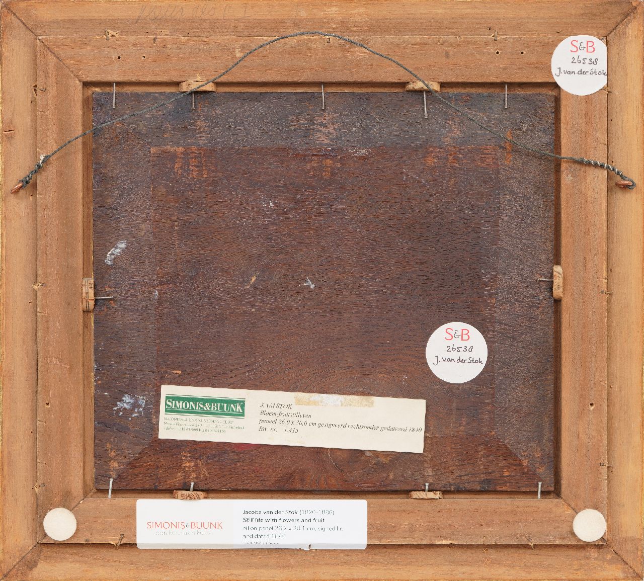 Jacoba van der Stok was een dochter van de schilder van wintergezichten Jacobus van der Stok. Zij woonde en werkte het grootste deel van haar leven in Amsterdam, waar ze naam maakte met bijzonder fijn uitgewerkte stillevens van bloemen en fruit. In stijl en opvatting stond haar werk dichter bij de pronkstillevens van de Hollandse 17de en 18de eeuw, dan bij de romantische 19de eeuwse bloemstillevens van schilderessen als Margaretha Roosenboom en Gerardine van de Sande Bakhuyzen.