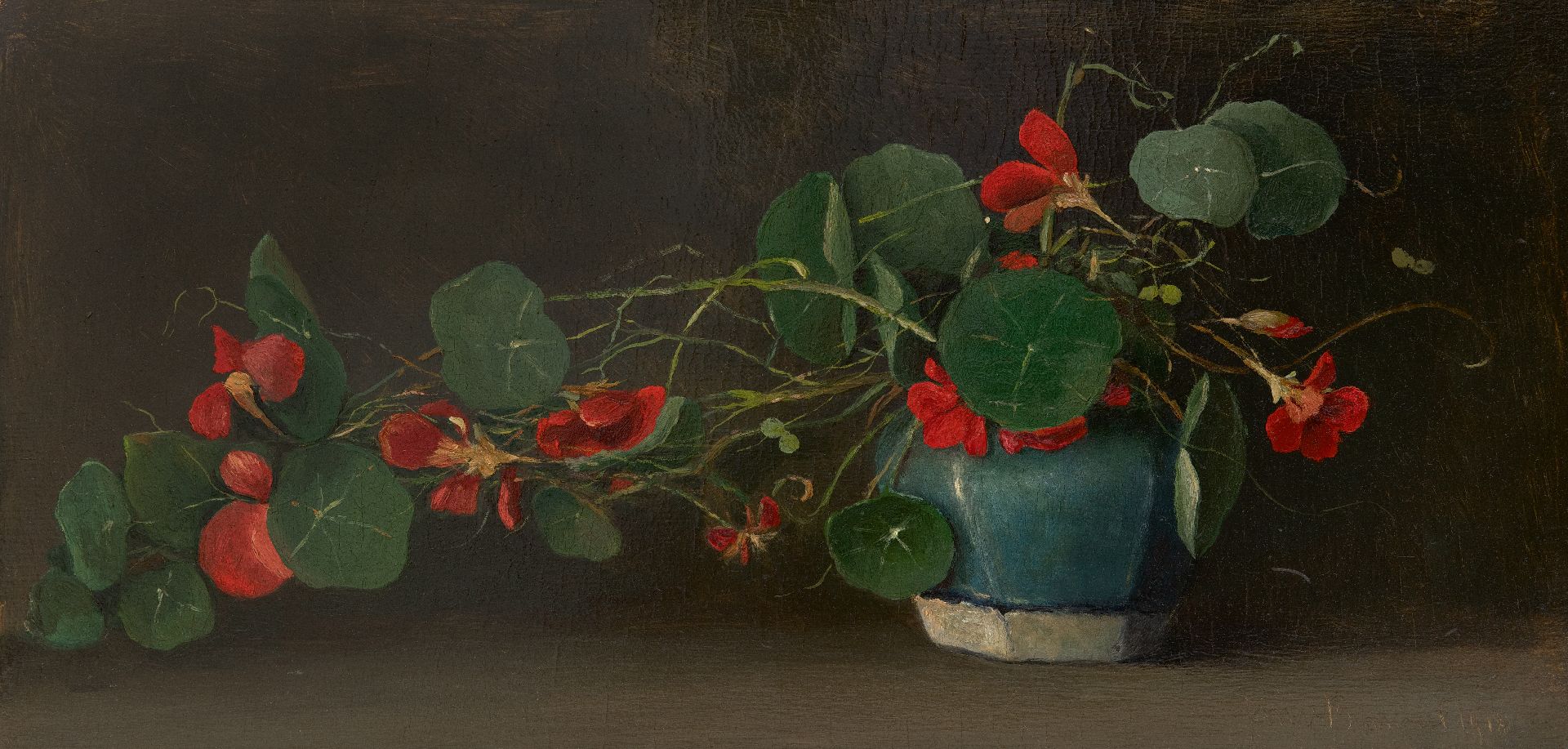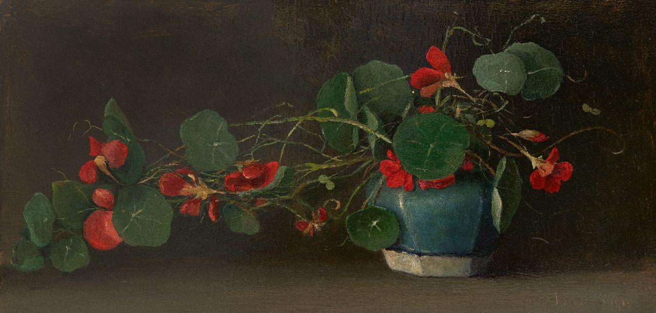 Jacobus Marinus van Bommel kunstwerk • schilderij • voorheen te koop Oost-Indische kers in gemberpot