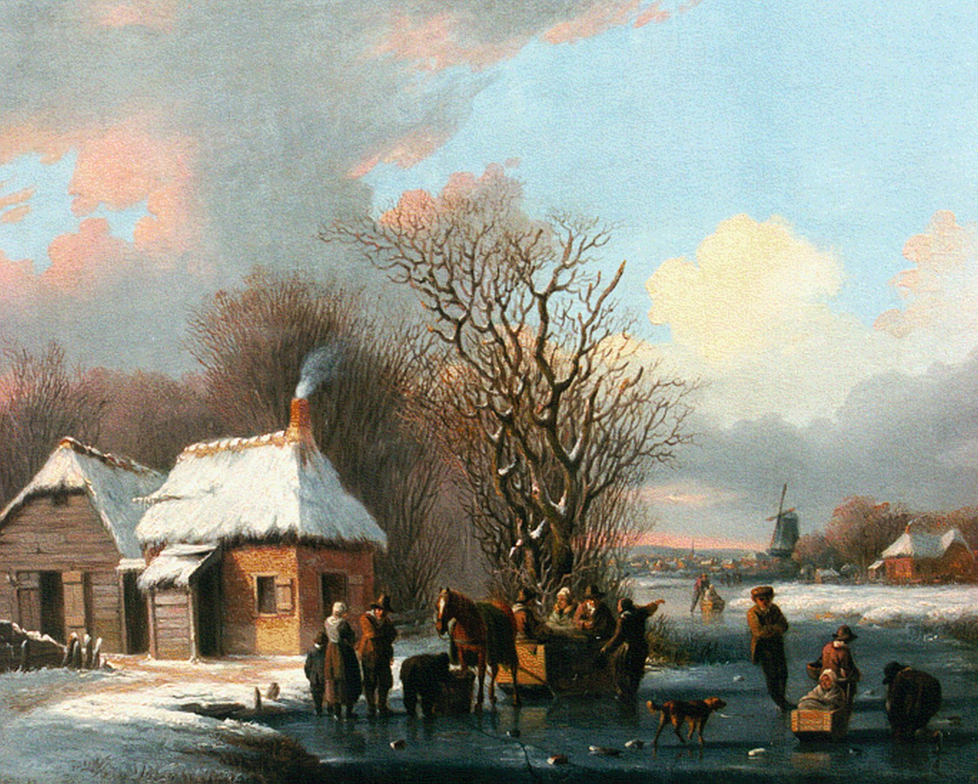 Jacobus van der Stok kunstwerk • schilderij • voorheen te koop Bedrijvigheid op bevroren vaart